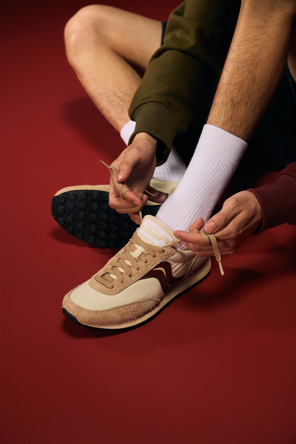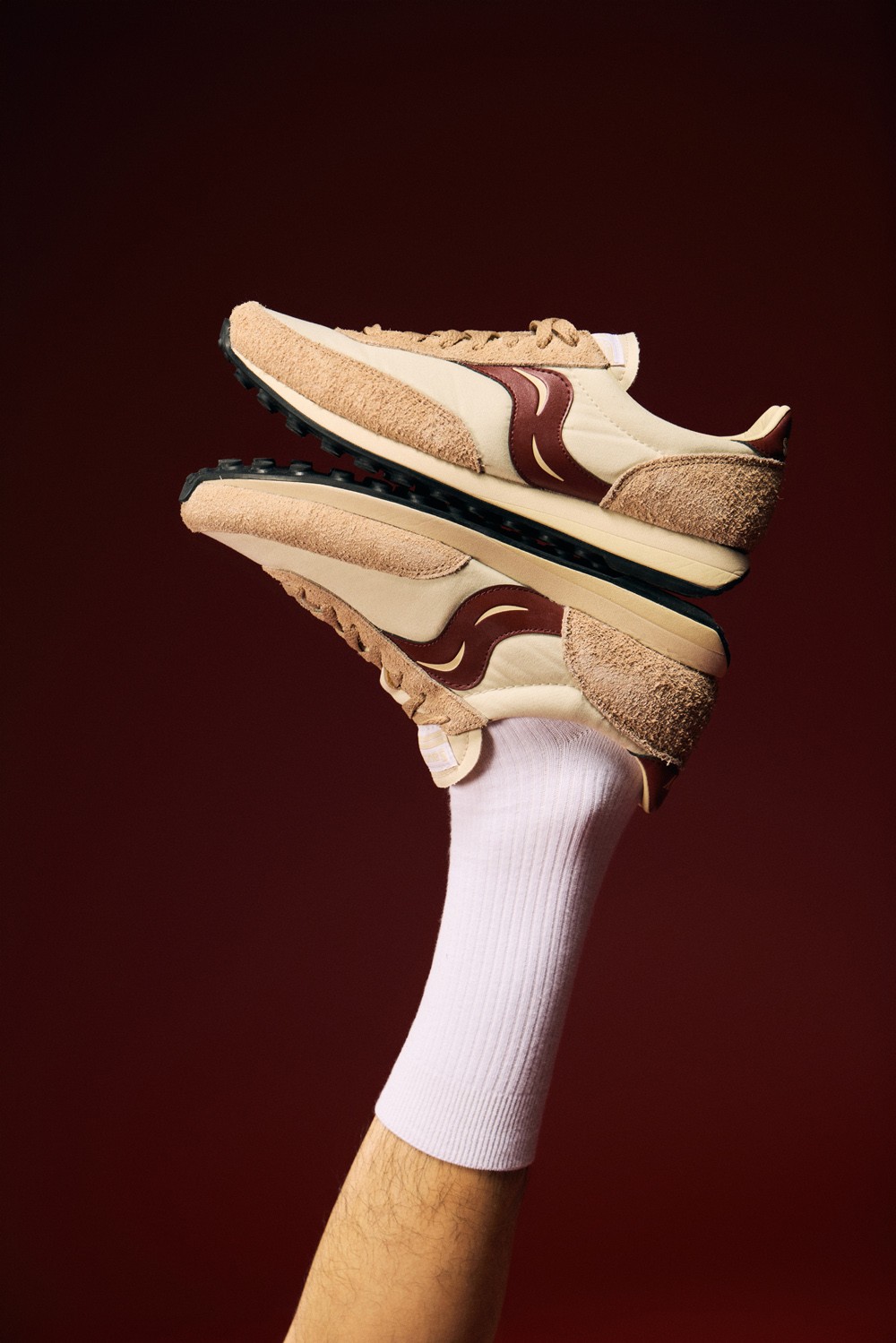 眼前这款诞生于 19 世纪 80 年代的 Trainer 1980 鞋型,首次大胆将球鞋传统的鞋垫板剔除,直接在鞋垫之下运用泡沫橡胶作为支撑材料,大幅提升回弹缓震与支撑性能,当年曾被著名运动杂志《跑者世界》授予五星评价并高居榜首。