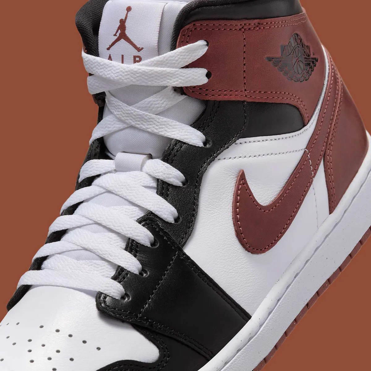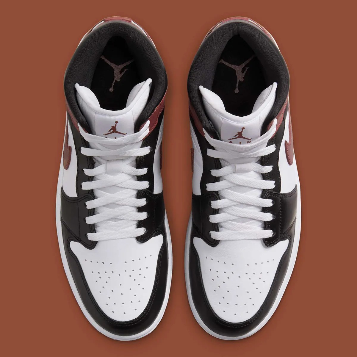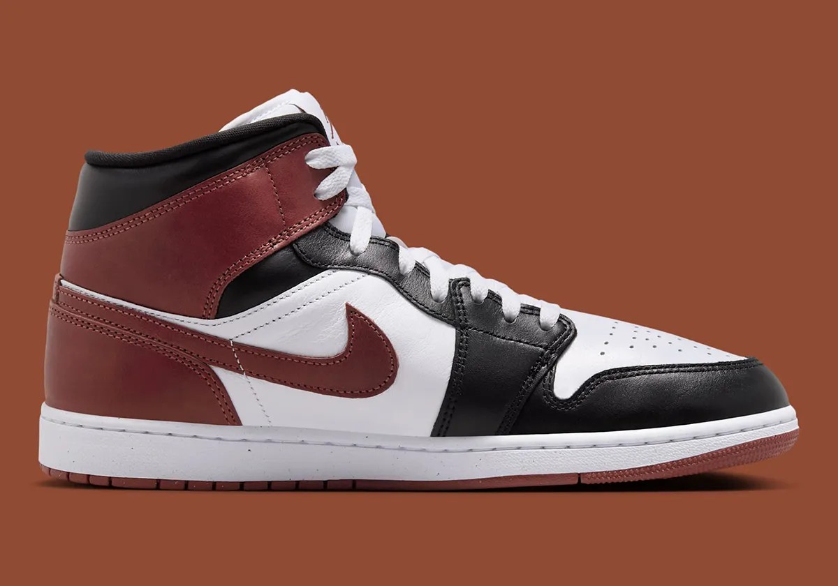 命名为 “Dark Pony” 配色的 Air Jordan 1 Mid 与黑脚趾有着相似的构色方案。