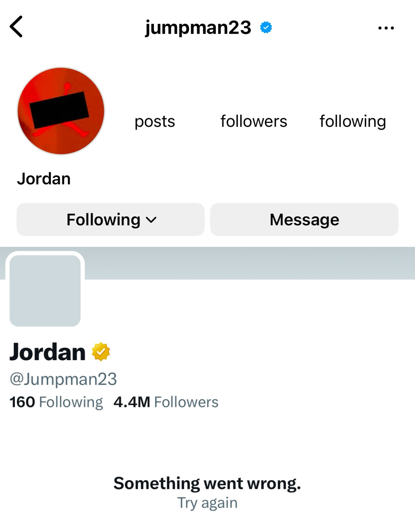 两大社交网络账号,Instagram 和 X(原 Twitter)上名为 @jumpman23 的账号,突然都被完全停用。