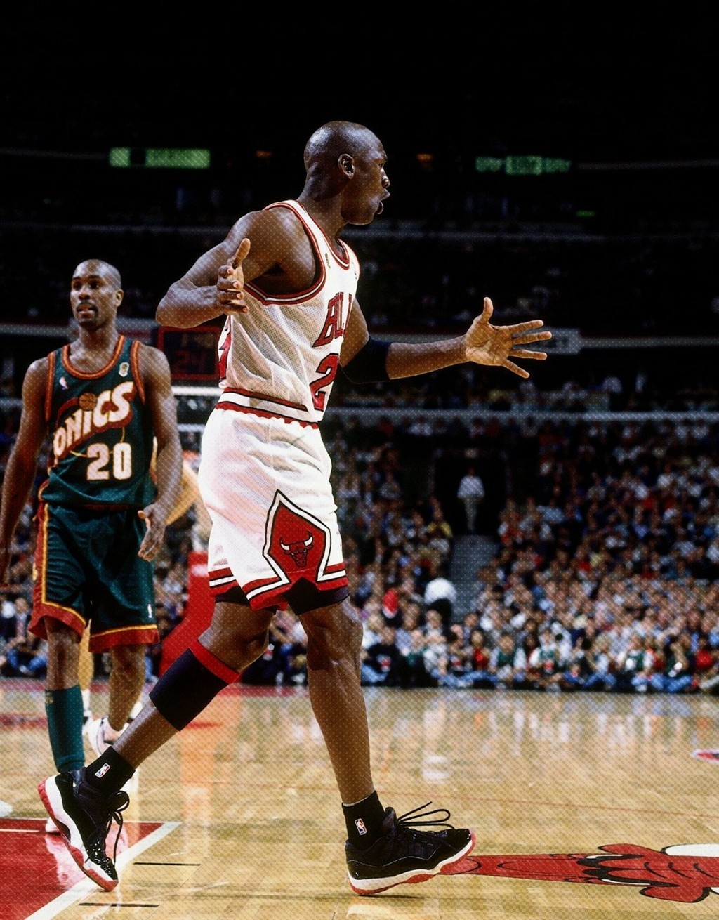 不仅如此,这也是乔丹总决赛上脚的战靴,当年就是这双鞋帮助他带领公牛战胜超音速。