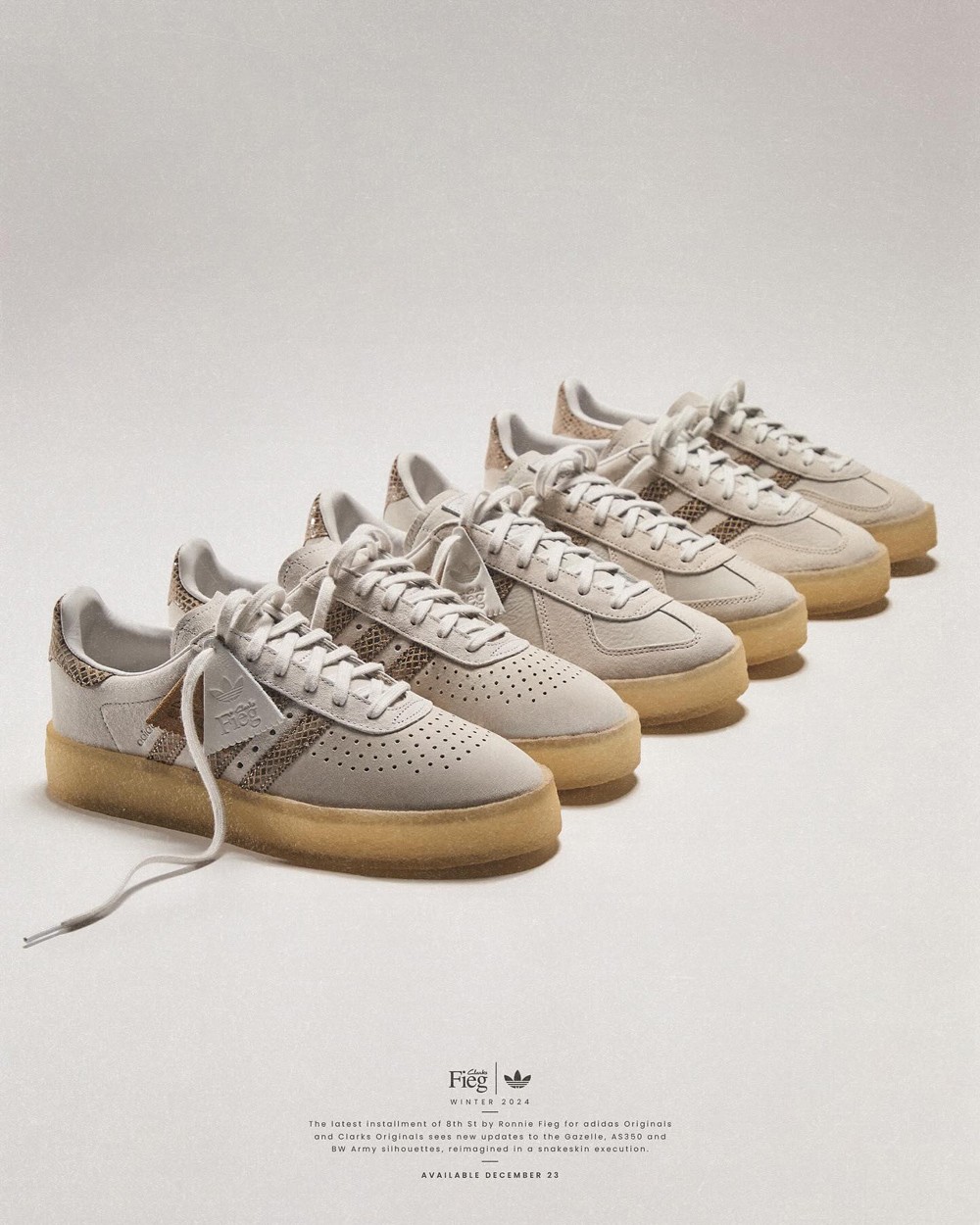 去年底 KITH 携手 adidas Originals 和 Clarks Originals 合作,打造的 Gazelle Indoor、AS350 和 BW Army 人气相当不错。