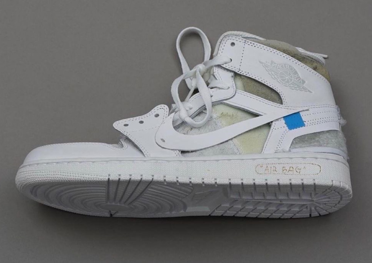 目前仍没有实物释出,此前传闻是全白的配色方案,是在致敬 Virgil Abloh 第一款 Sample 版本的 OFF-WHITE x Air Jordan 1。
