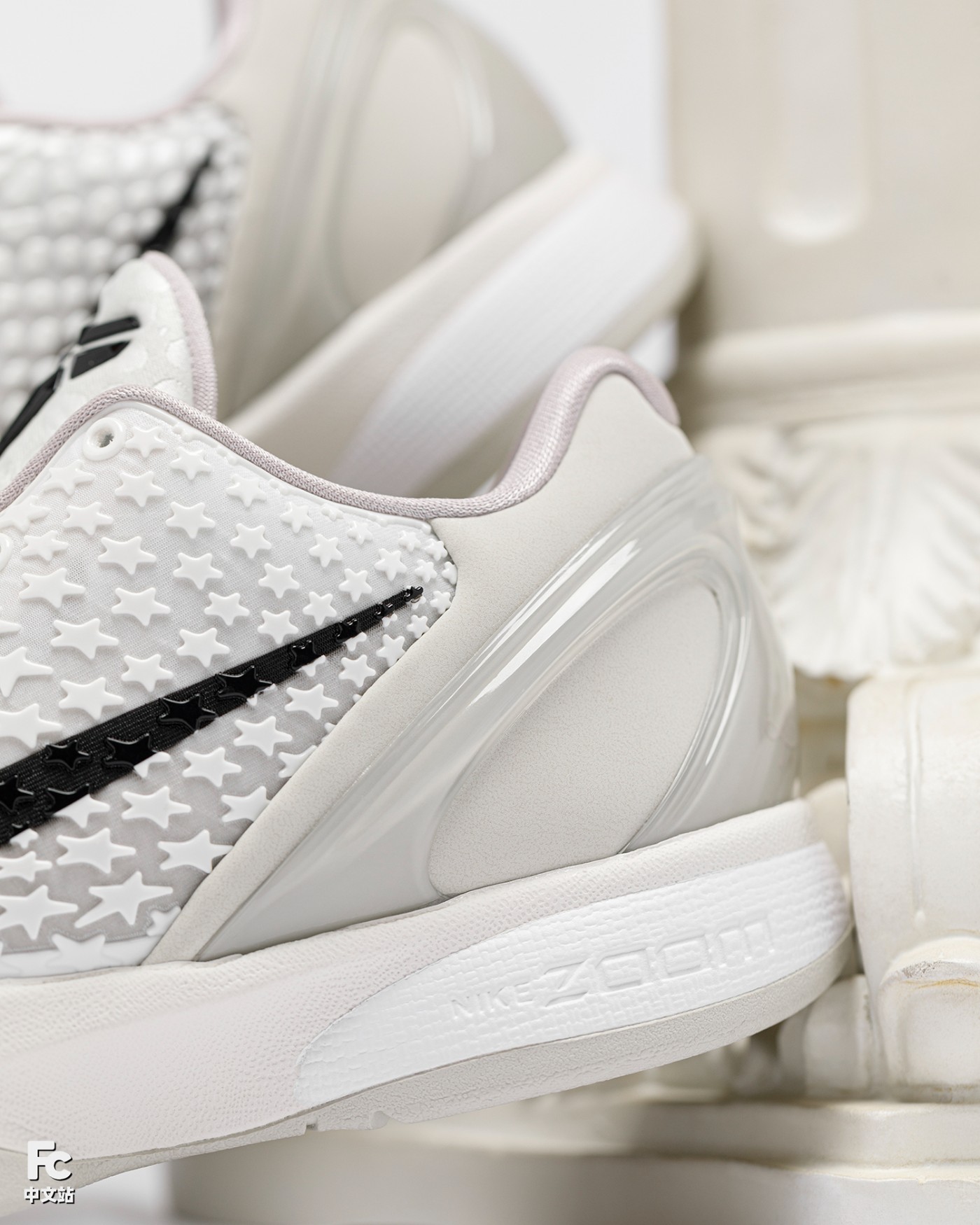有了「全明星 2.0」的名号,这双鞋也将部分鞋面的造型改成了星星形状,直击主题的同时,也刷新了大家对于 Kobe 6 的常规认知。