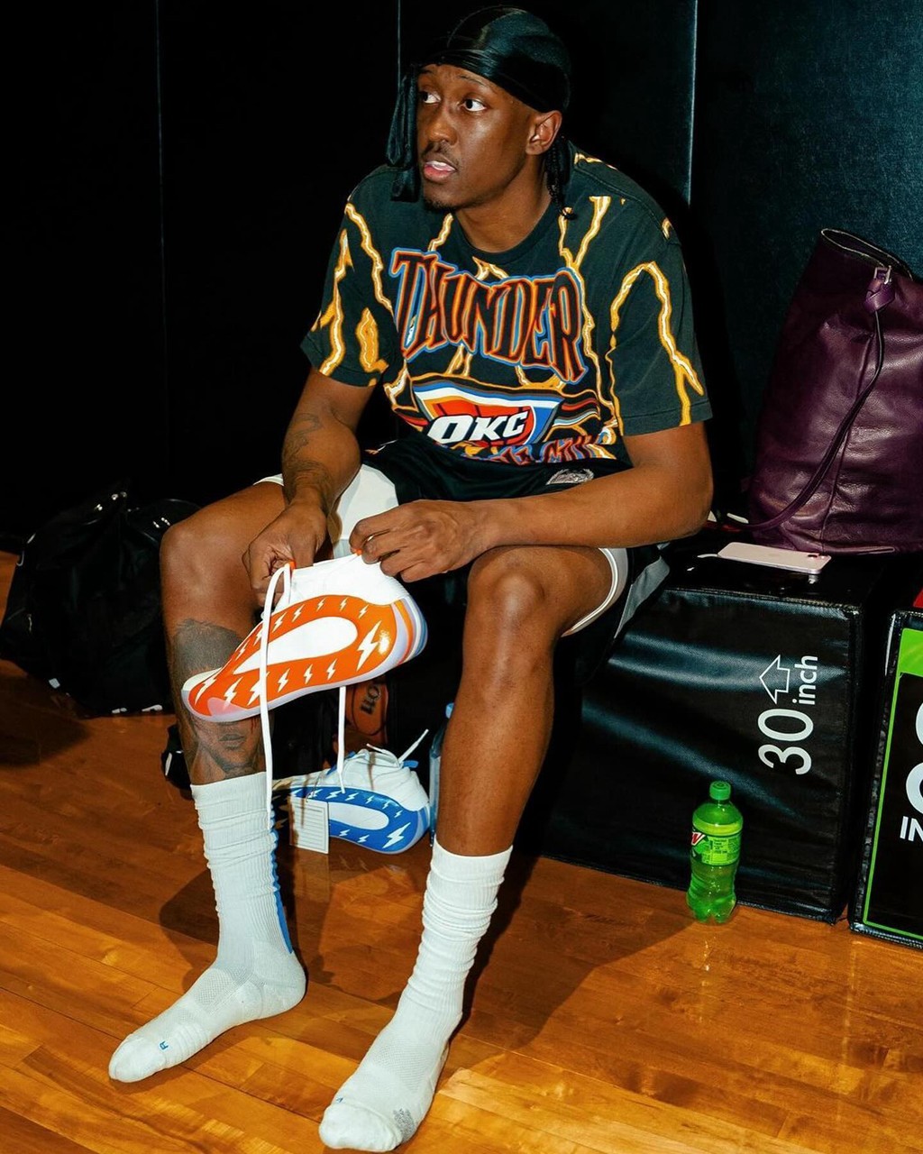 鞋面配色一看就很熟悉,就是 DC 经典反派小丑的色调,也是杰伦·威廉姆斯最爱的漫画角色之一。