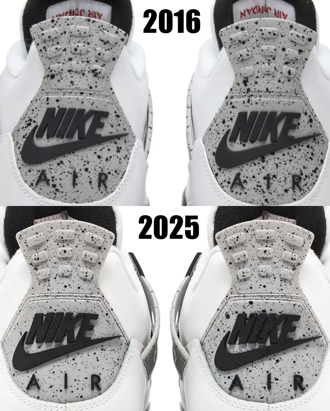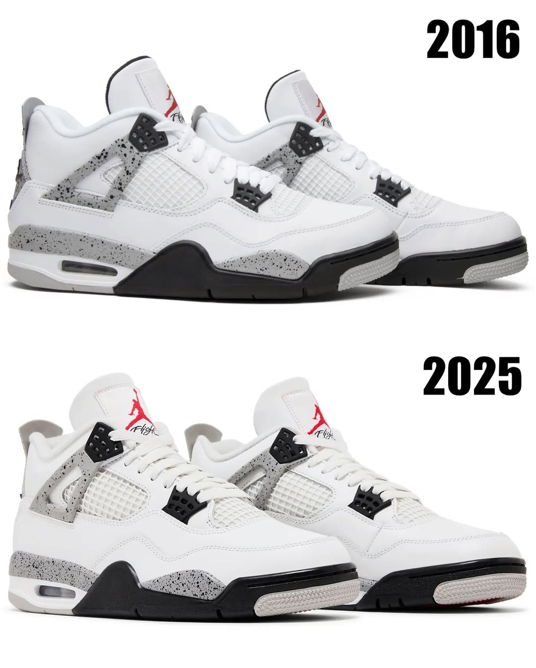 大家心心念念的「白水泥 AJ4」实物曝光很多次了,最近终于迎来与 2016 款的对比图。