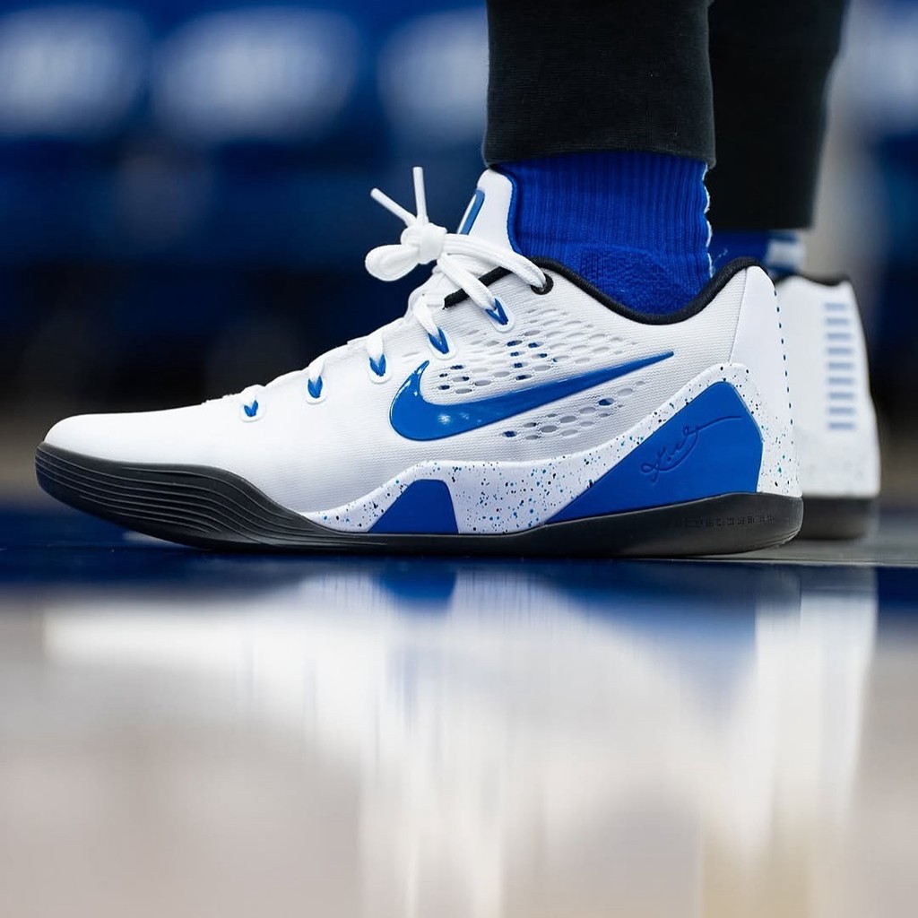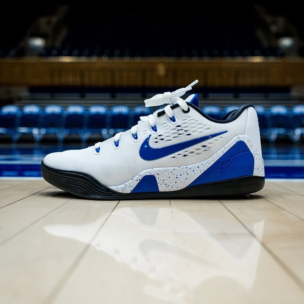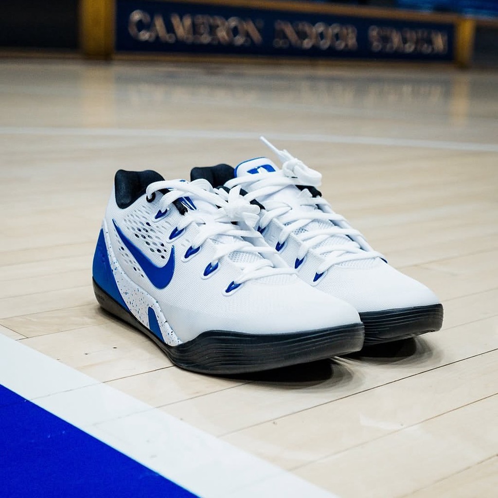 其中咱们熟悉的杜克大学蓝魔队率先公布了最新一批 PE 战靴,以 Kobe 9 EM 为基础打造。