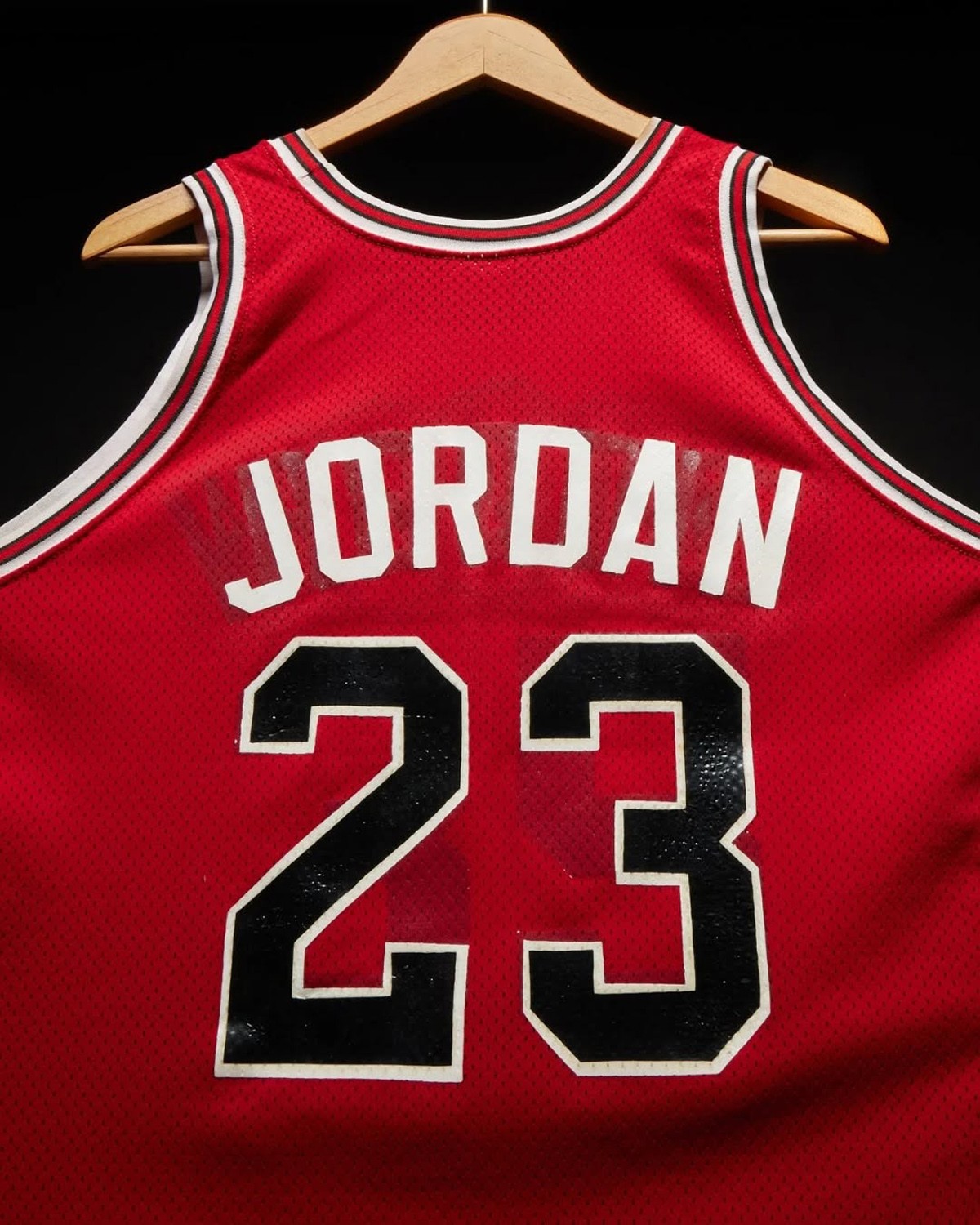 特别值得一提的是,当年公牛队由于预算限制,这件乔丹首秀球衣并非全新,而是将之前球员的名字与号码清理后,重新印上乔丹的名字及未来震撼联盟的 23 号,细看背后位置的胶印也确实如此。