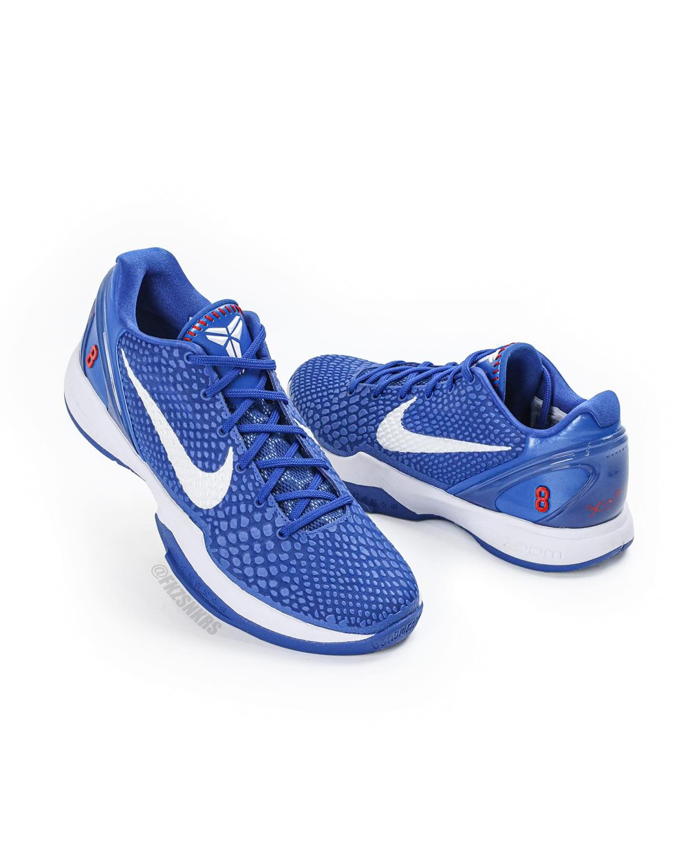 鞋侧 Swoosh 与鞋舌科比 Logo 辅以银色点缀,最后采用冰蓝果冻外底收尾。