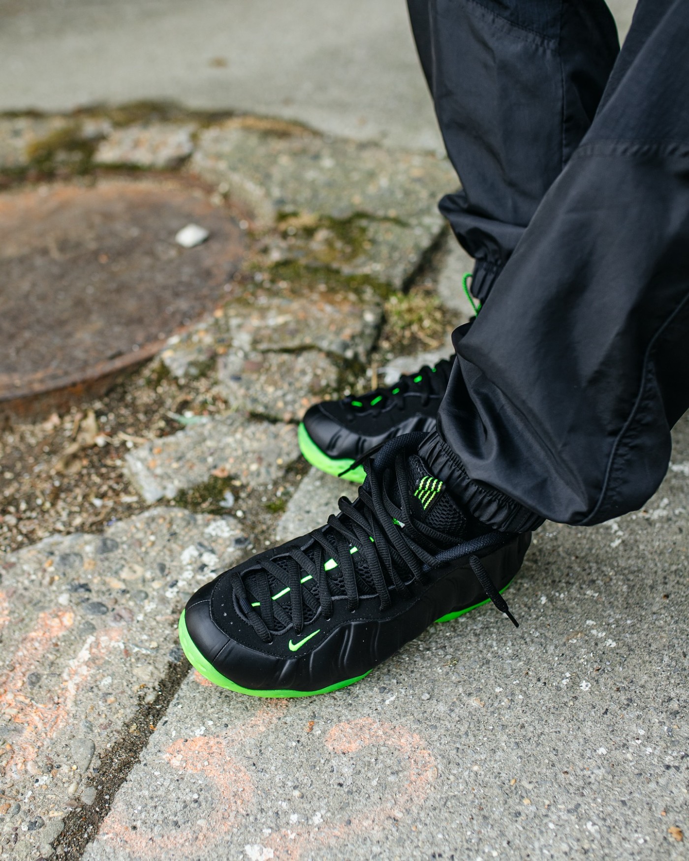 这双「黑绿喷」有着极为低调的全黑鞋身,外底和鞋身细节采用了荧光绿色呈现,结合鞋面的独特质感,颇有一番新鲜感受。