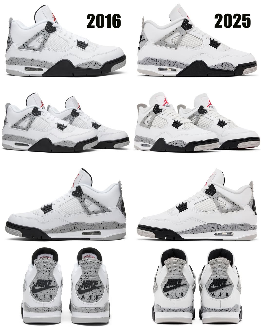 根据新旧「白水泥 AJ4」对比图来看,鞋侧网眼要比 2016 款更窄。