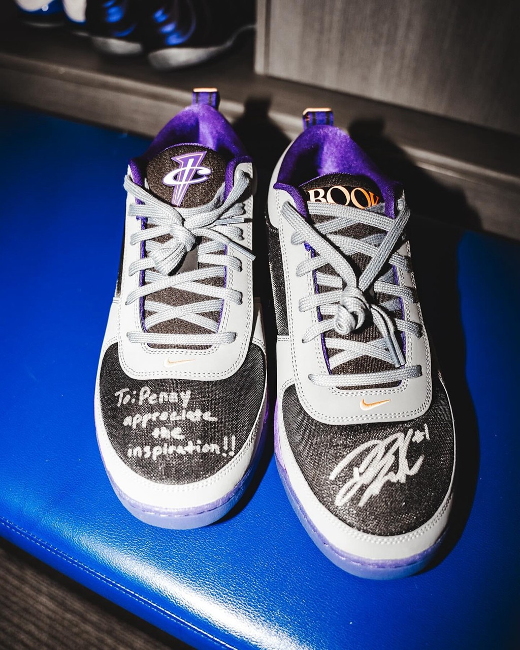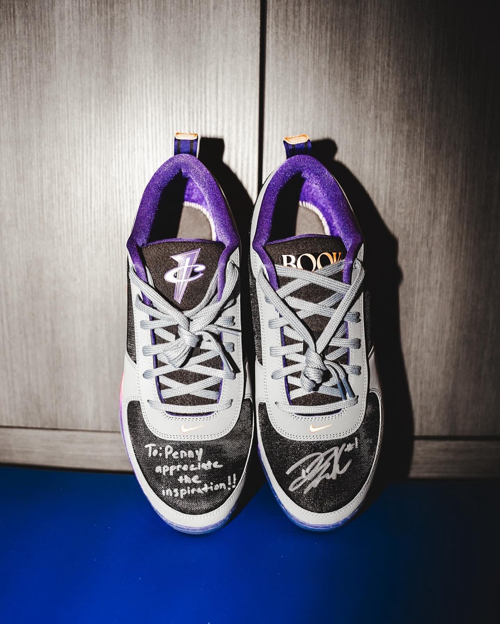 布克也是希望借此机会,向这位前辈致敬,将这双独特的 Book 1 作为礼物送给哈达威。