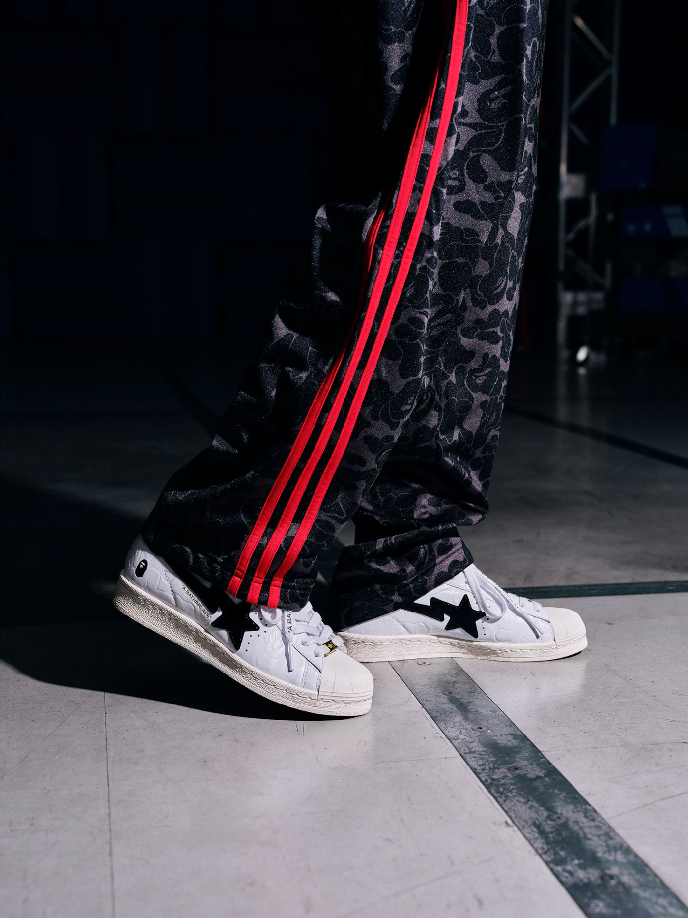 一边是三道杠,一边是 BAPE 星标,依然是不对称设计。