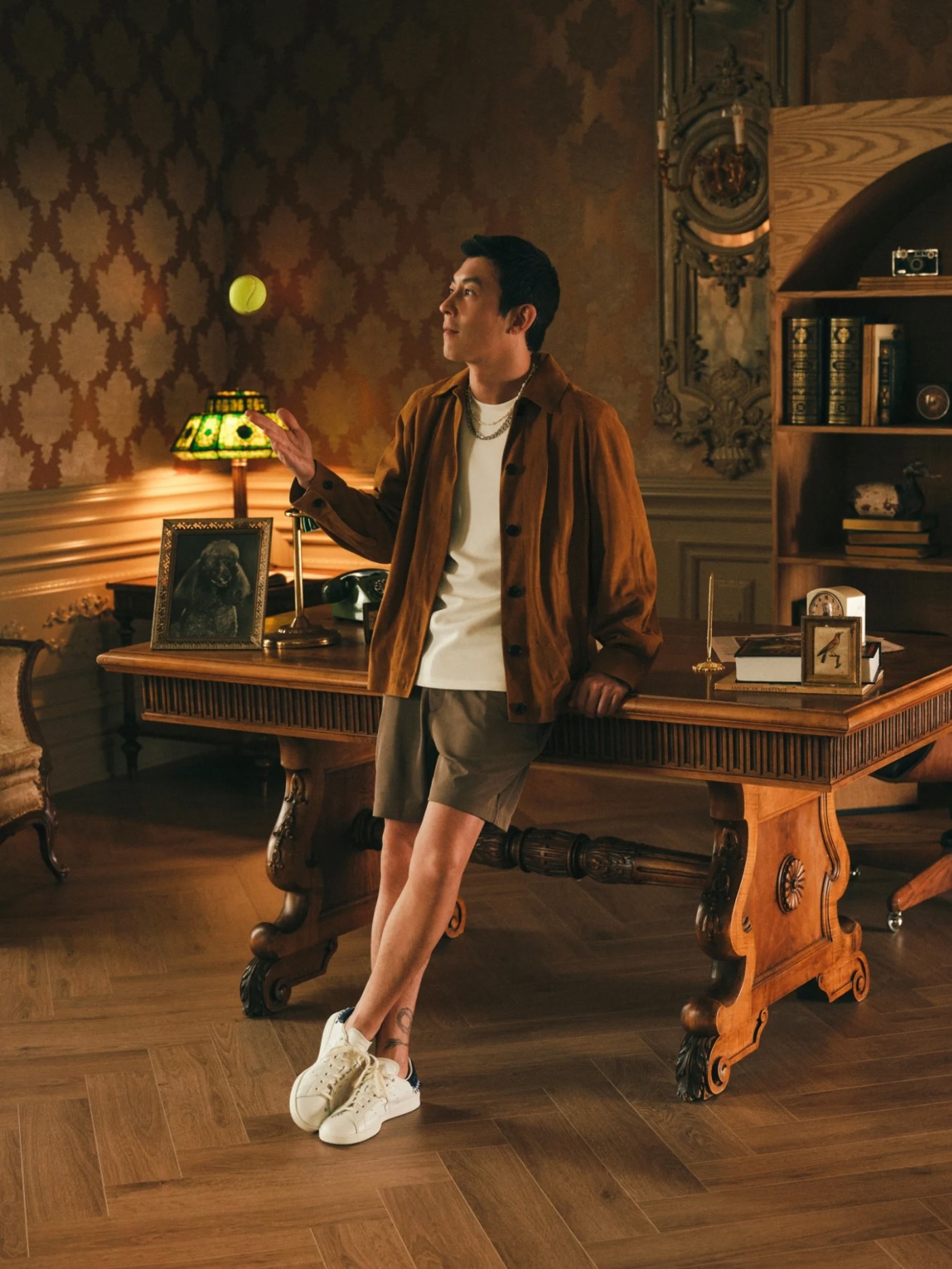 本次的官方造型由陈冠希本人和「鱿鱼游戏」演员郑浩妍共同演绎,型录以「乡村俱乐部」为主题,以浓浓的复古潮流韵味演绎这双鞋的百搭造型。