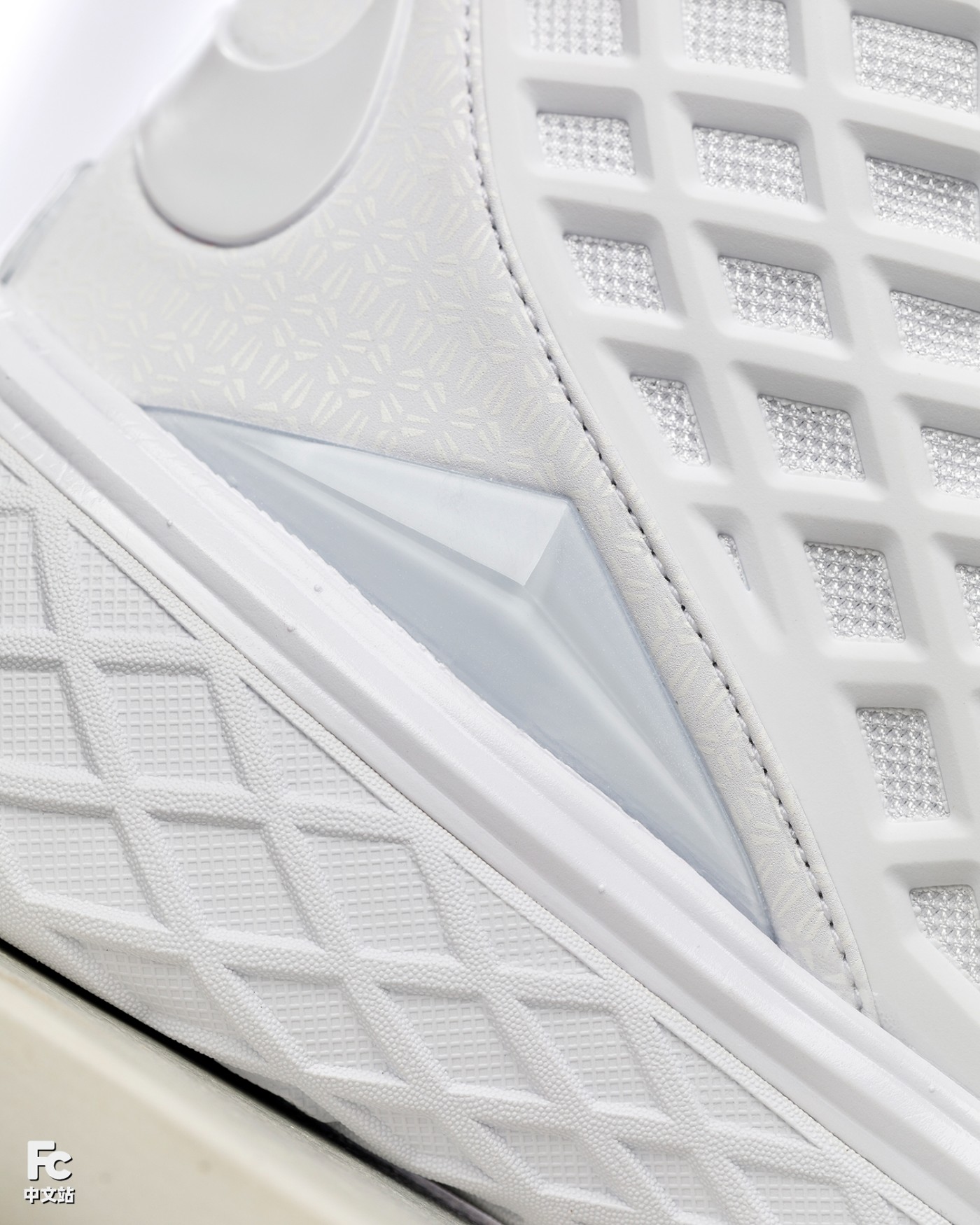 第三,在外底前掌的核心发力区域,增加更多纹理刻画,这点小编放一张此前 FTB 配色的外底对比图,大家就能一目了然。