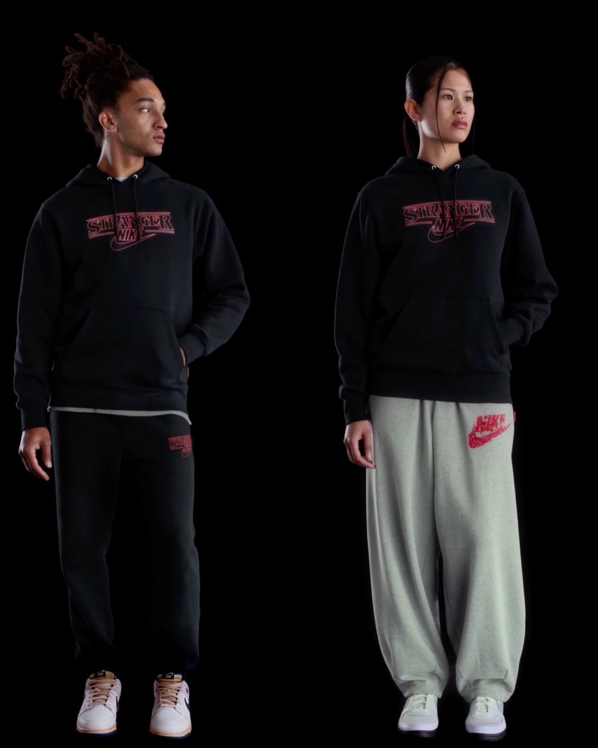 每双鞋舌的 Nike Logo 均被上下翻转,呼应了剧中 “颠倒世界” 的平行时空。