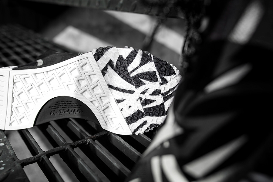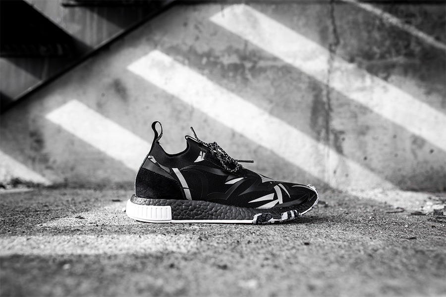 以全新的 NMD Racer 鞋型为蓝本打造,采用了 Primeknit 鞋面 + 全掌 Boost 中底的顶级配置。中底以黑色涂装呈现,衬托了黑色荆棘鞋面的独特和个性,整体更具劲酷气质。