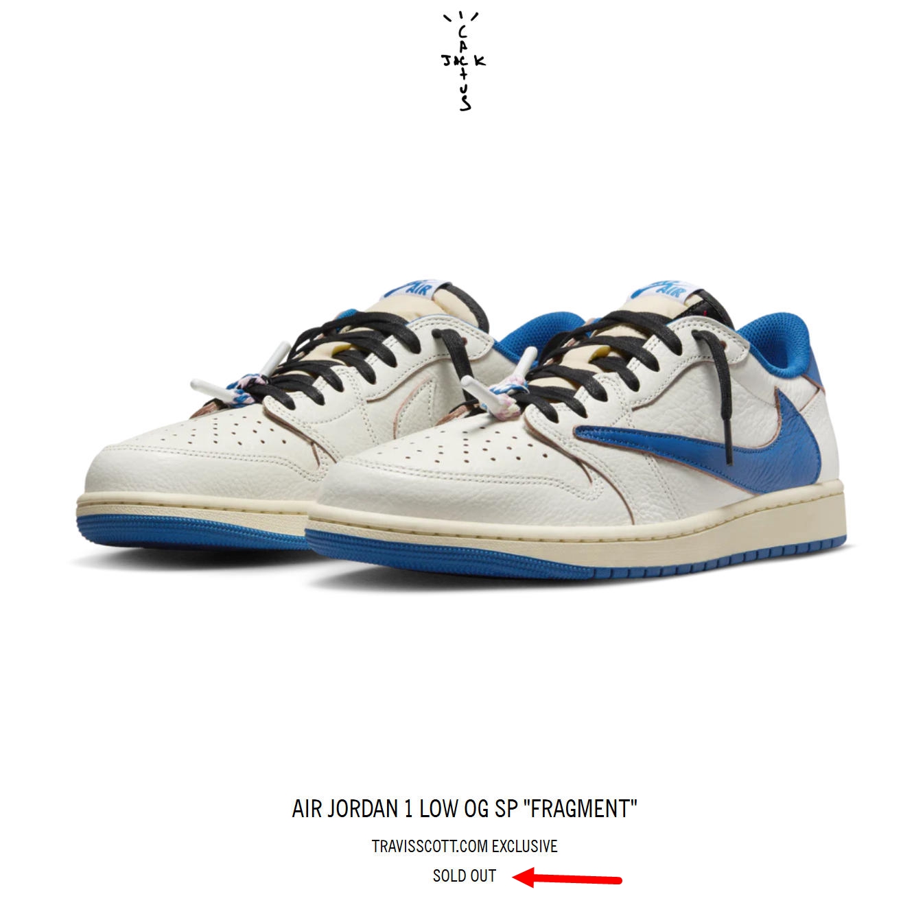 目前 Travis Scott 官网已经显示了售罄的英文字样。