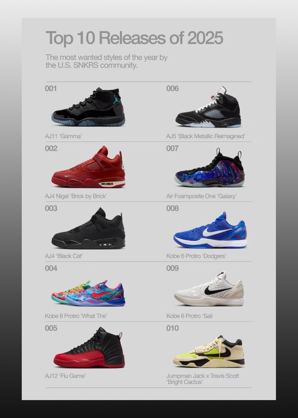 在迈入新一年之际,Nike SNKRS 公布了美区最受欢迎的 10 款球鞋发售。