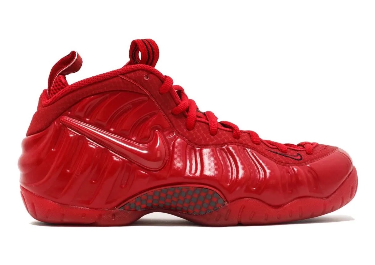 此后一段时间,采用大红色彻底笼罩的鞋款,都被称为了 Red October 配色,也包括眼前这双 Nike Air Foamposite Pro “Gym Red”。