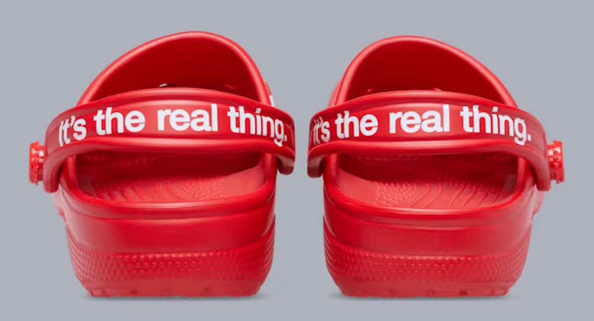 鞋面点缀的 Jibbitz™ 智必星配件灵感源自可乐包装,增添趣味细节。鞋跟带印有 “It’s the Real Thing” 标语,唤起消费者多年来的熟悉记忆。