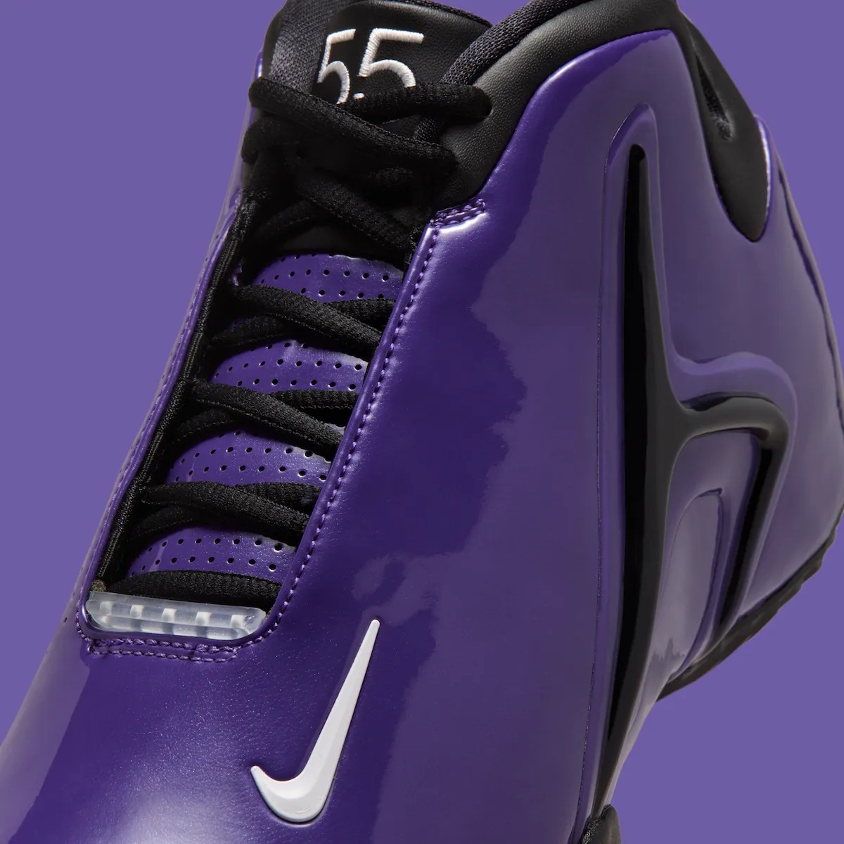 我们此前已经报道过这双白巧克力 PE 配色街舞风雷即将回归的消息,除了全紫色鞋面外,还带有 55 数字元素。