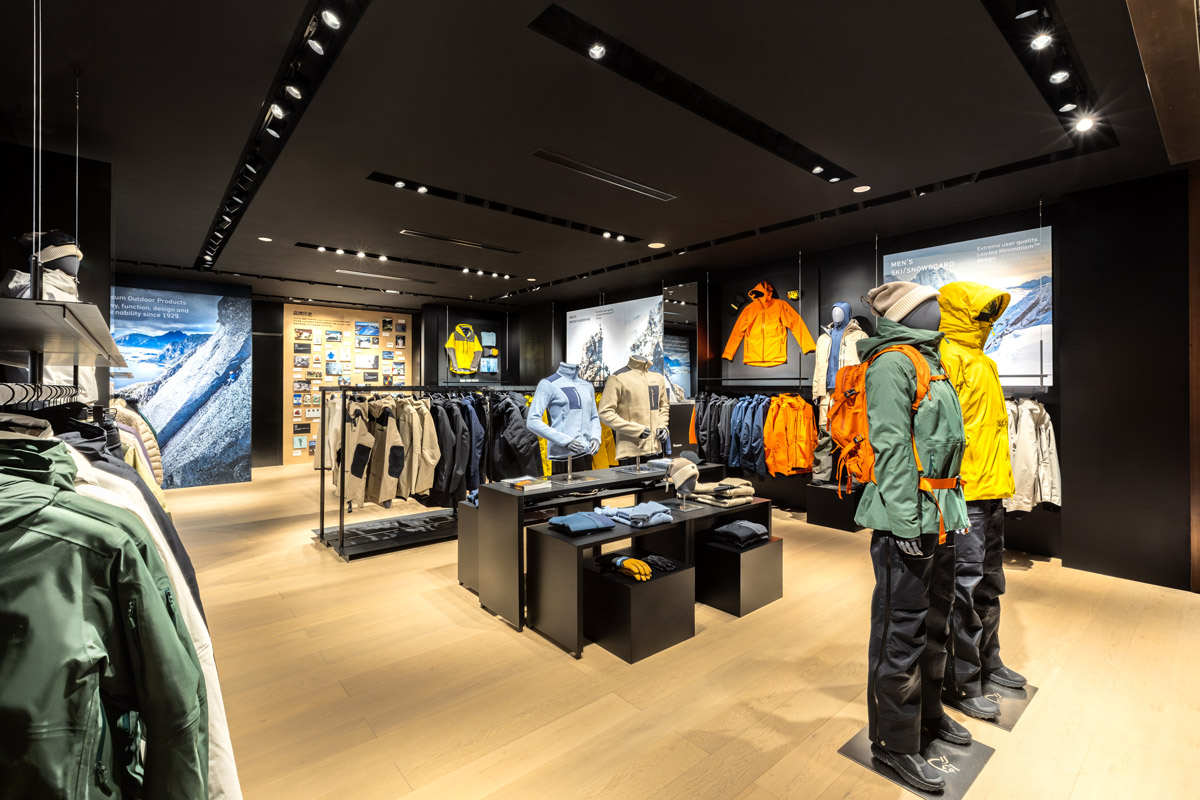 店内不仅陈列了滑雪、登山、徒步及越野跑等全场景装备,还特别设置了一面品牌历史墙,让大家在挑选装备的同时,也能感受到品牌近百年的文化积淀。