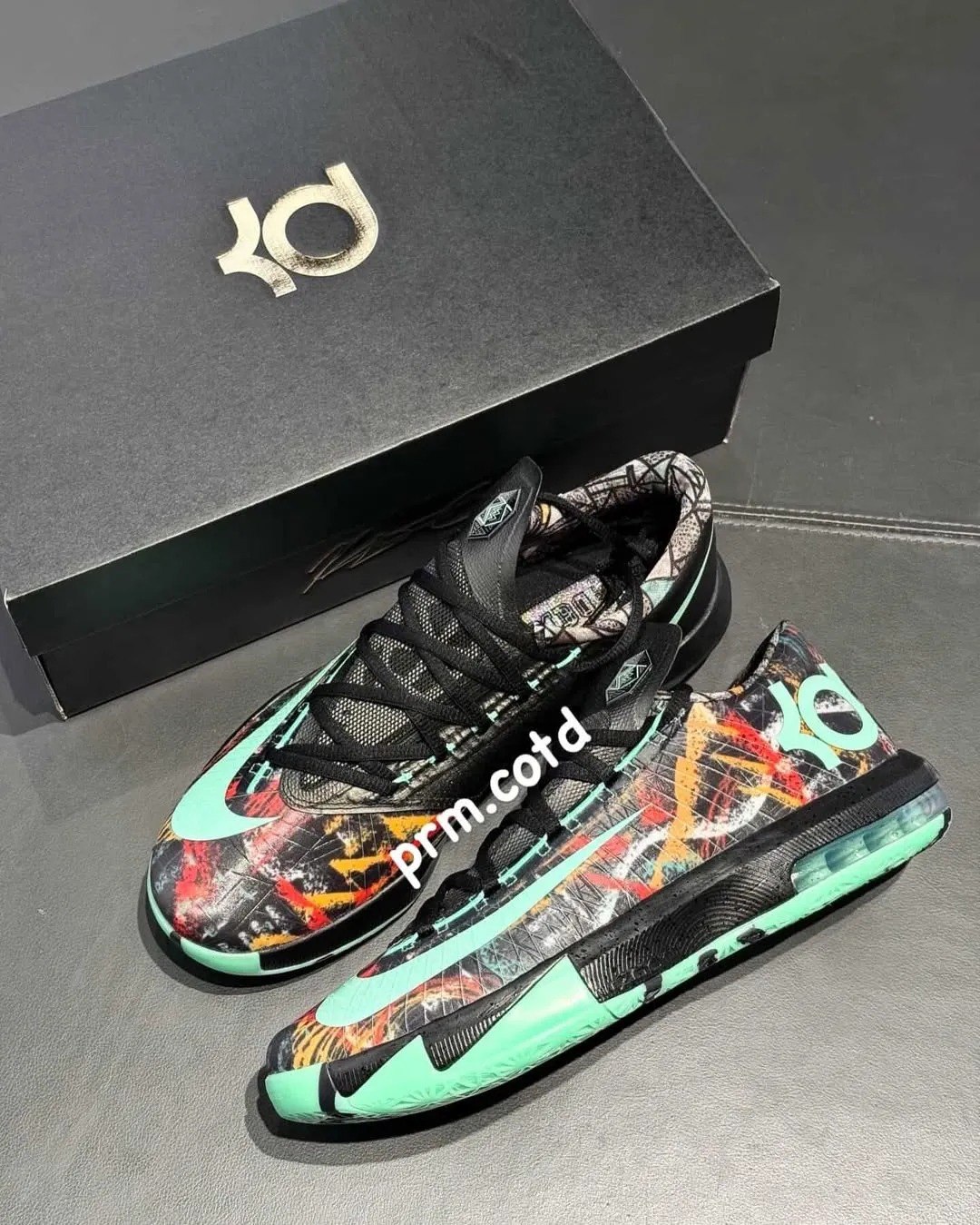 设计层面,鞋面大面积覆盖手绘风格的抽象图案,视觉上有种 “不断变化” 的感觉,也正好对应杜兰特在场上难以预测的进攻节奏与得分方式。