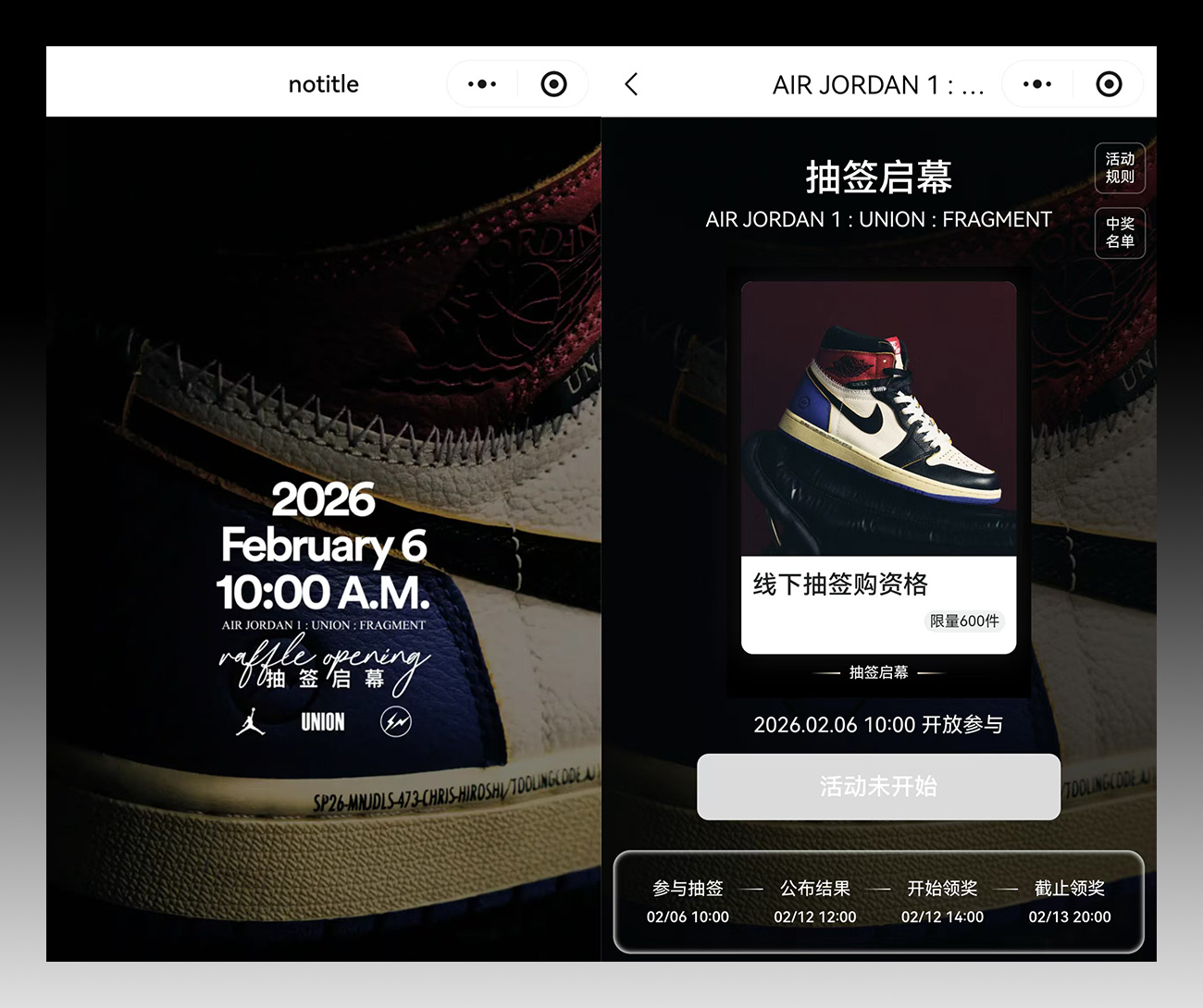 目前 notitle 小程序已经开启了抽签,将于 2 月 12 日 12:00 公布结果。