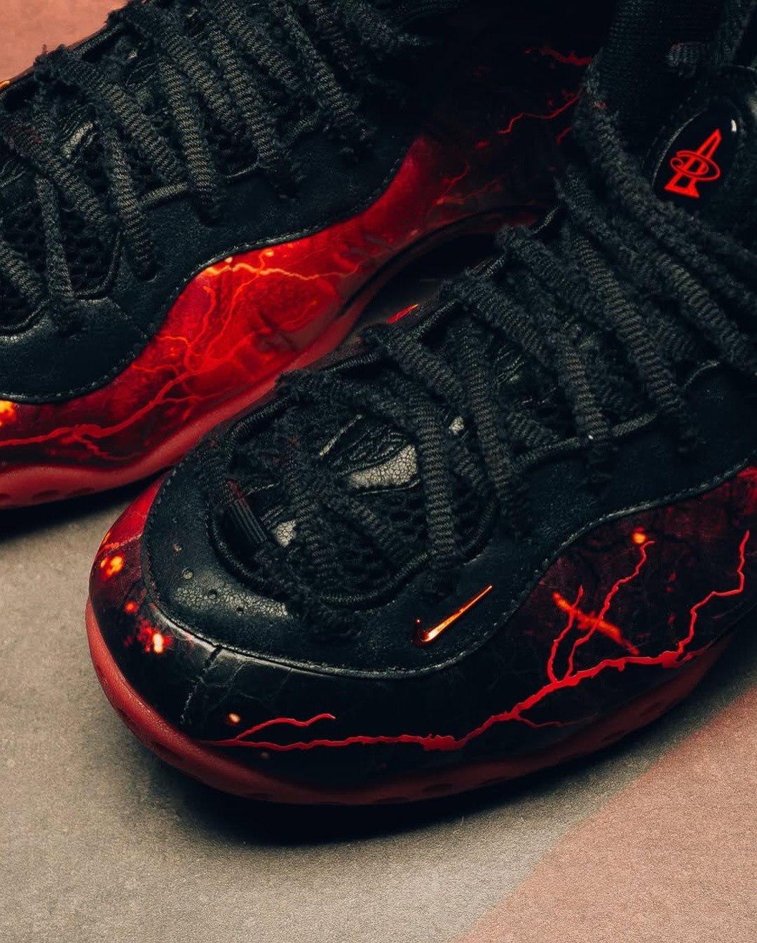 整双鞋依旧以 Foamposite 标志性的发泡鞋面作为主舞台,配色从深黑逐渐过渡到燃烧般的红色,带来非常直观的情绪变化。