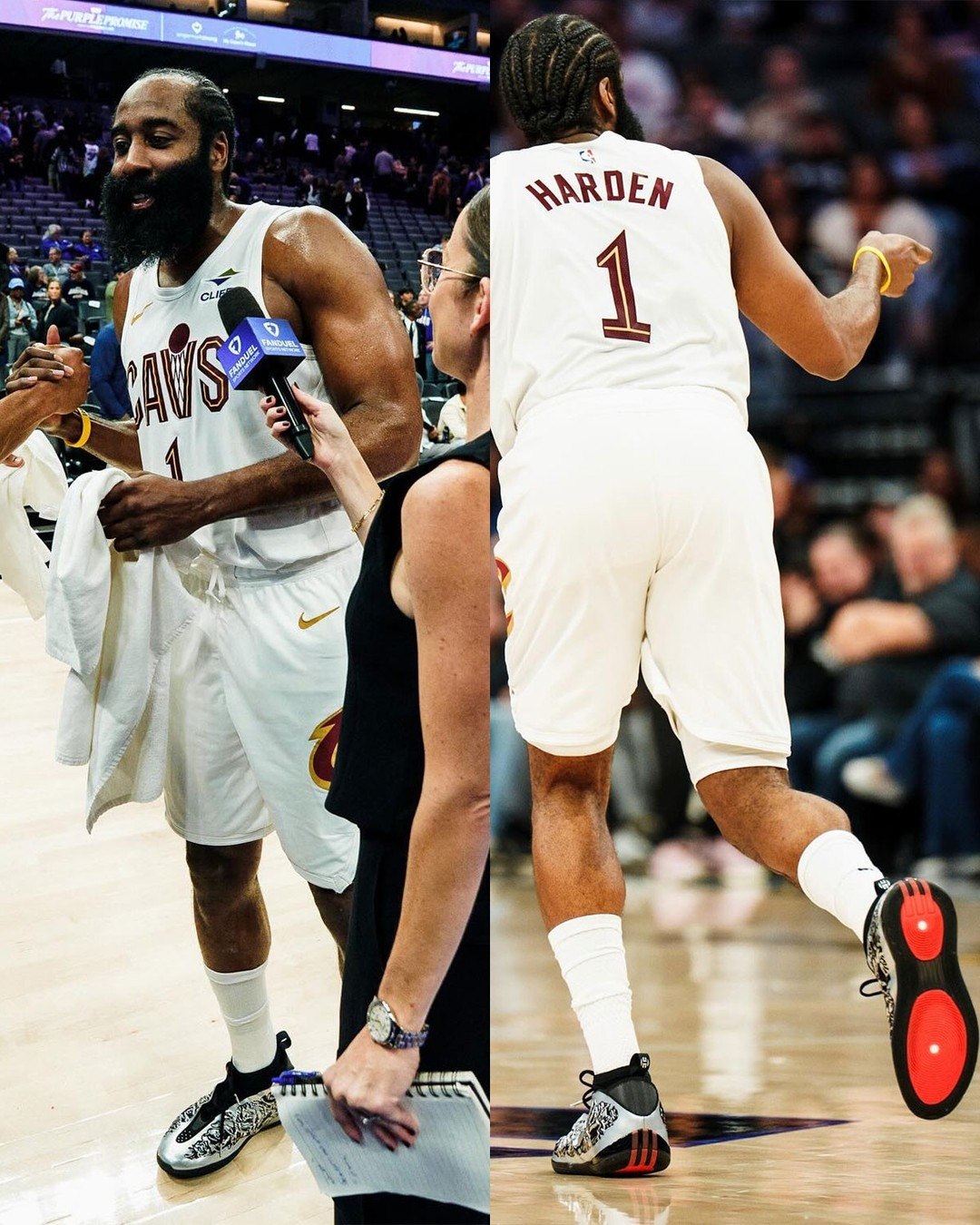 刚刚结束的骑士队主场首秀中,詹姆斯·哈登不仅展现了全新面貌,脚下的球鞋更是成为了全场焦点。