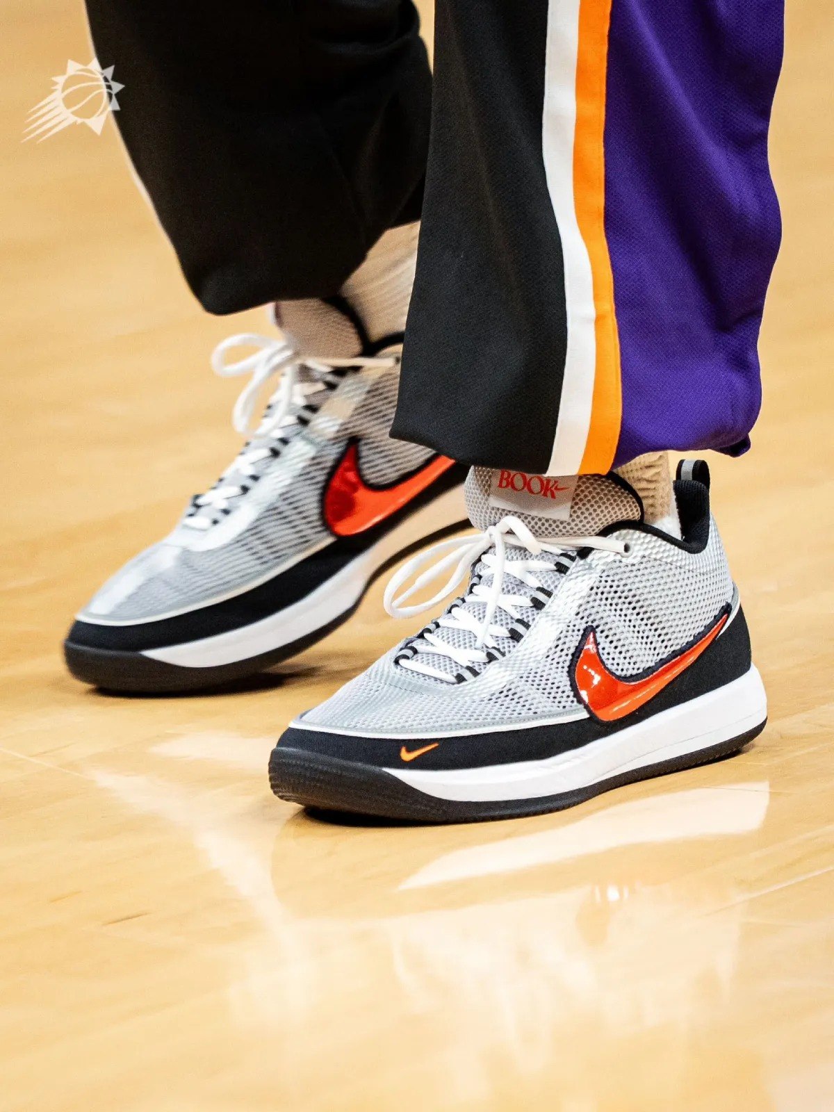 赛前,布克在个人社交平台上展示了一双 Nike Book 2 “Texas Longhorns” 专属版本。这双鞋的设计致敬了得克萨斯大学长角牛队的传统。