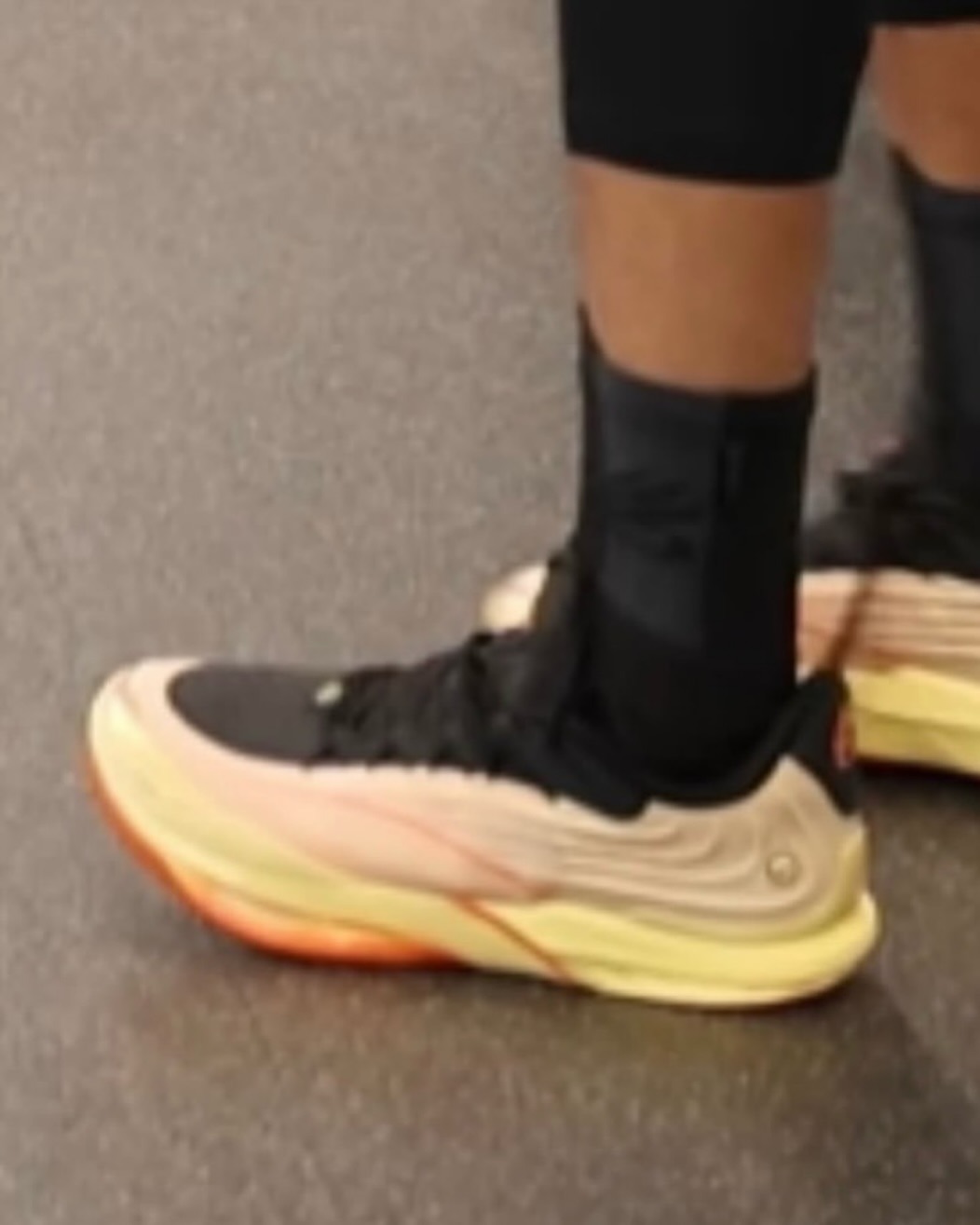 在克莱与安踏签下终身合同之后,库里是否会跟随克莱、欧文,也加入中国品牌安踏,就成为了网络热议的话题。 而今天,这一话题的热度被再次推高。 库里在训练时被拍到上脚了一双采用安踏最新缓震科技的 ANTA Eclosion Type 2,但重点在于这双鞋的后跟处带有 库里个人专属的 Curry Logo。 这应该是安踏篮球为库里量身打造的 PE 鞋款,说明安踏正在积极争取他的加入。 而双方是否会有进一步的合作,目前还不得而知,但至少说明安踏和库里在洽谈合作的可能性方面都持开放态度。