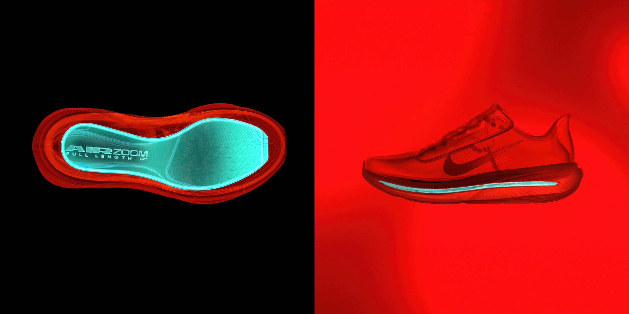 Nike Pegasus 42 在外观上延续了经典的家族式设计语言,在大家最为关注的缓震科技方面,相较上一代的「ReactX 泡棉 + 前后掌 Air Zoom 气垫」,这一代改为了「ReactX 泡棉 + 全掌 Air Zoom 气垫」。