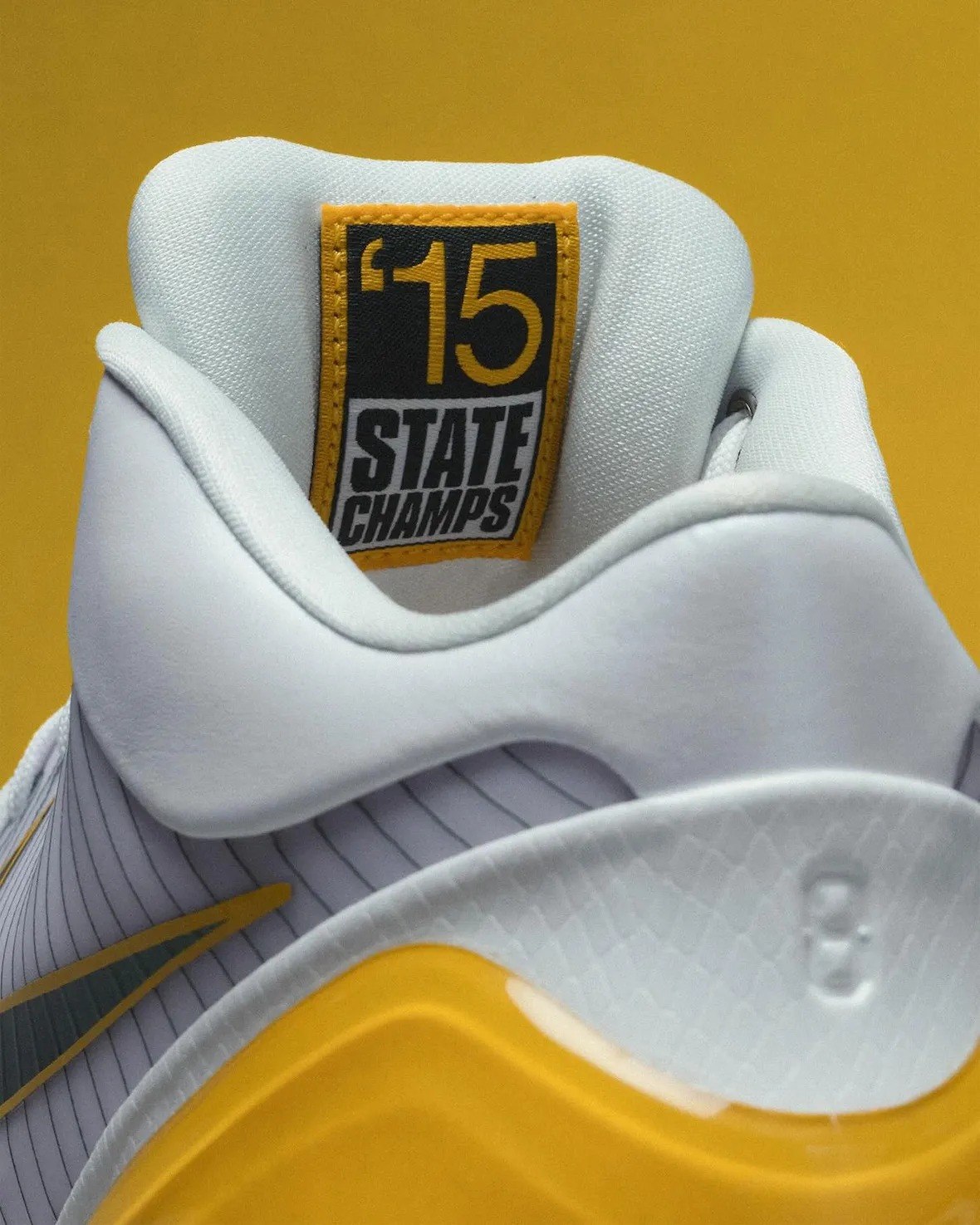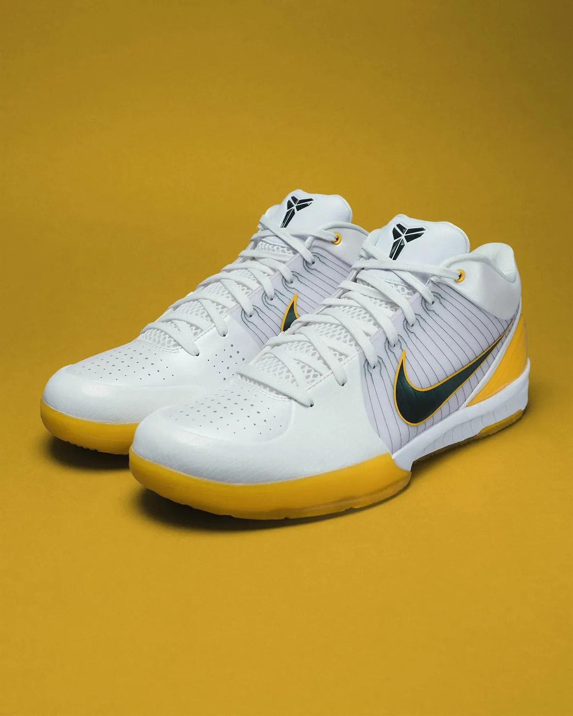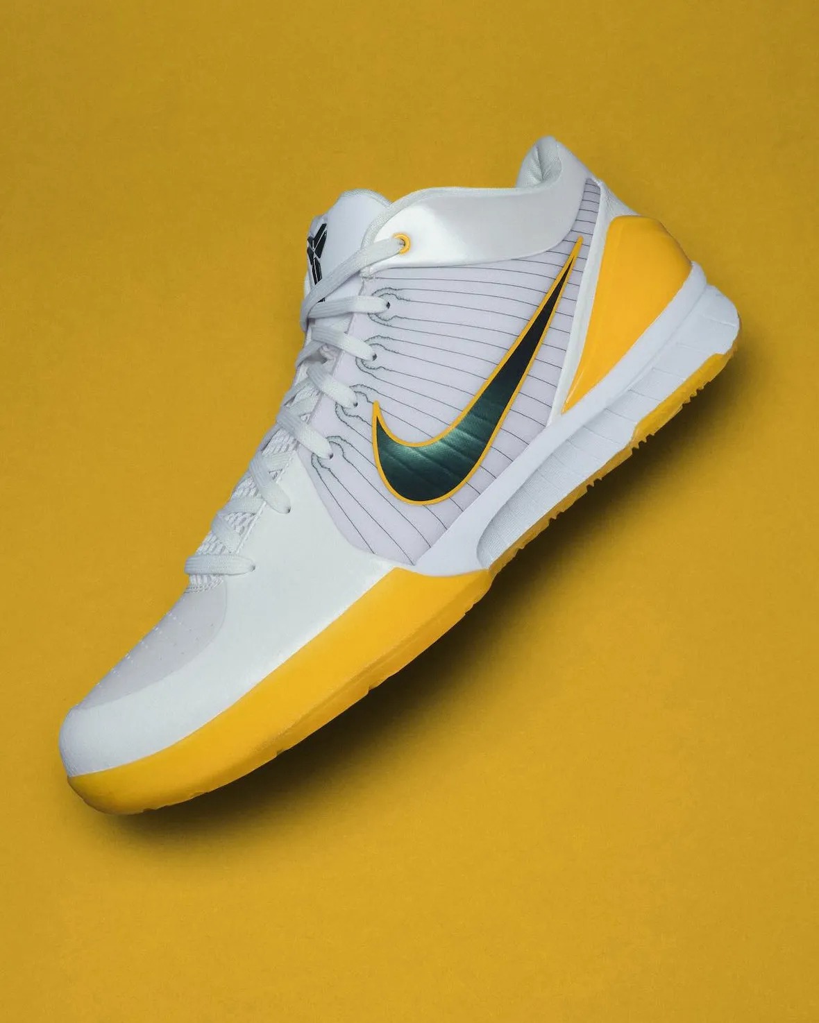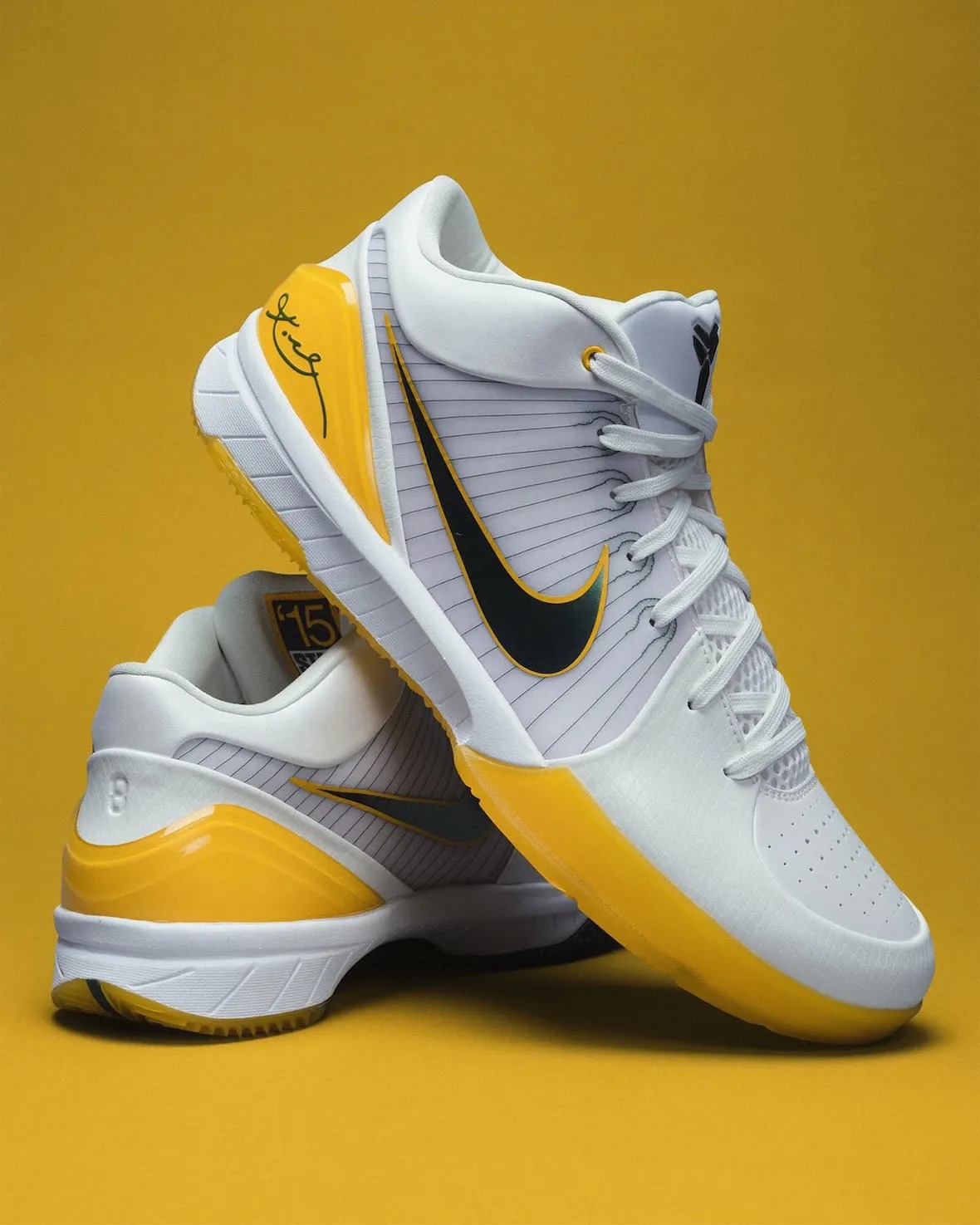 整双鞋正是为了纪念那个高中夺冠赛季。鞋身以白色作为基础,后跟和外底部分加入了黄色细节。鞋侧面的 Swoosh、外露飞线以及鞋舌上的科比个人 Logo,都采用了深绿色来点缀。