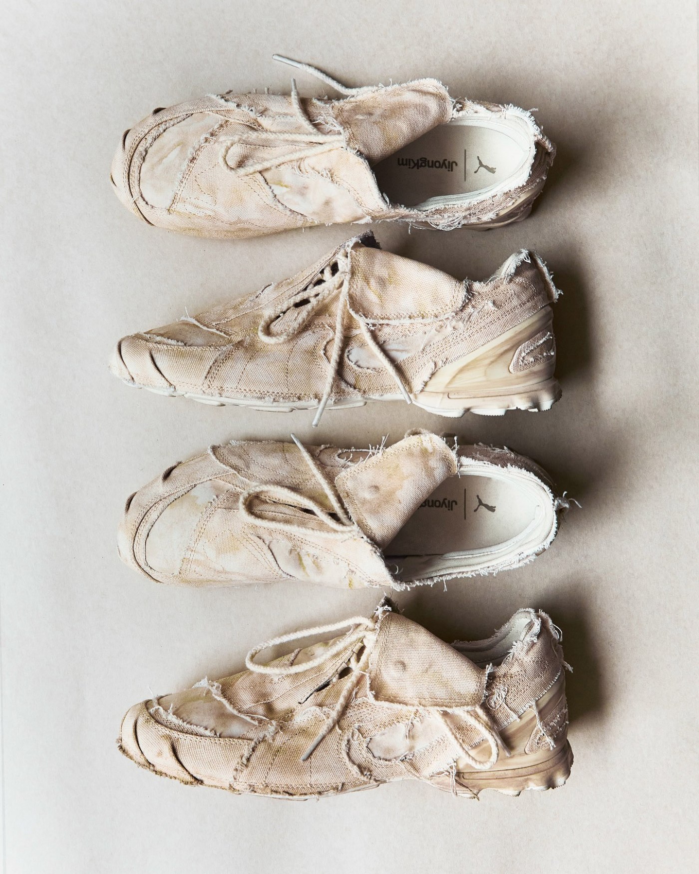 这次的 JiyongKim x PUMA V-S1 鞋型围绕 PUMA 经典足球鞋型 V-S1 展开,以解构手法重新诠释这双运动遗产。