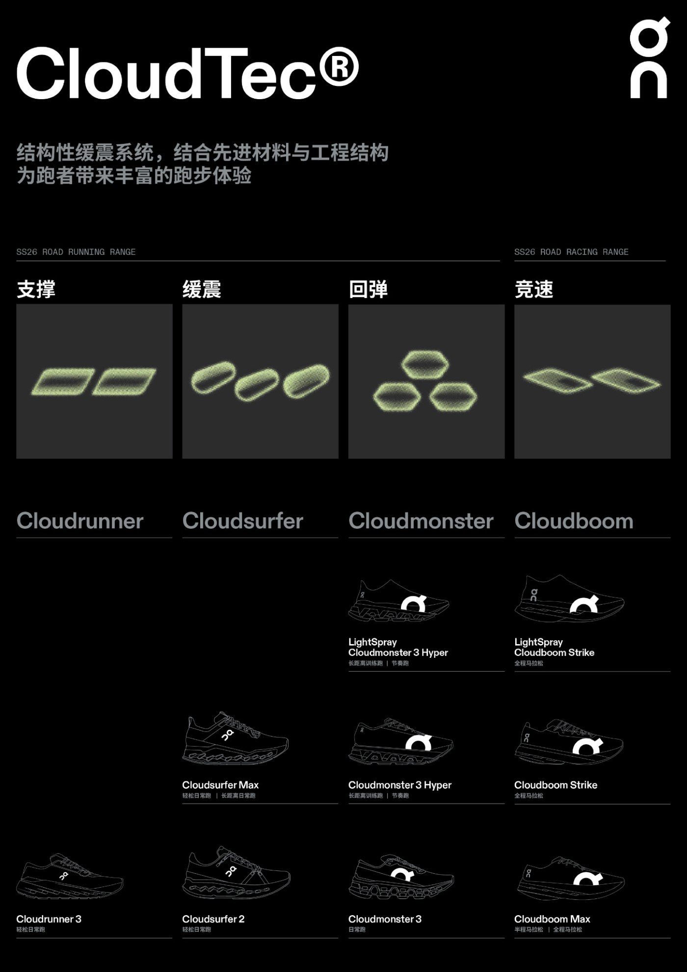 作为深耕跑步领域的专业运动品牌,On 昂跑早就为不同运动场景打造了细分的产品线。