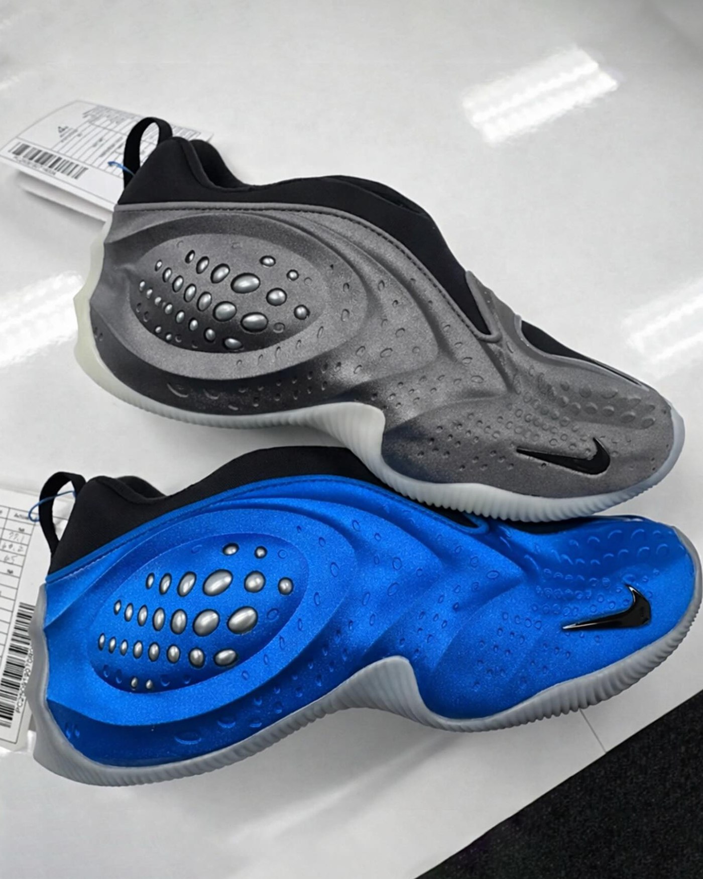 一体成型的鞋身轮廓,很容易让人联想到 Alpha Project 时期的经典之作,比如大家熟知的「Foamposite 喷泡」和「Flightposite 风一」。