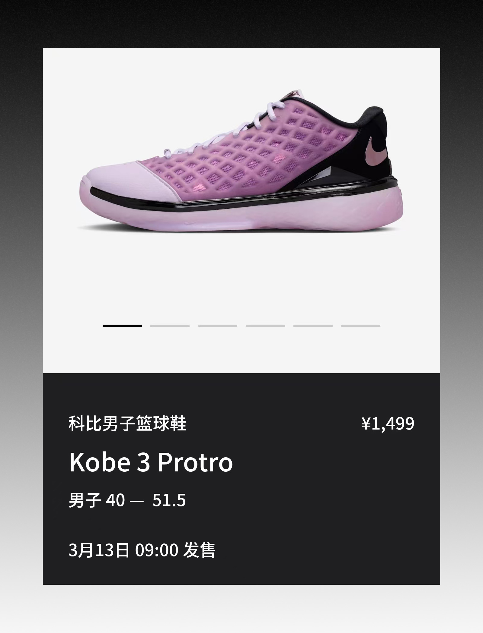 整体视觉较为柔和、淡雅,Kobe 3 标志性的鞋面框架依然是最大的亮点所在。