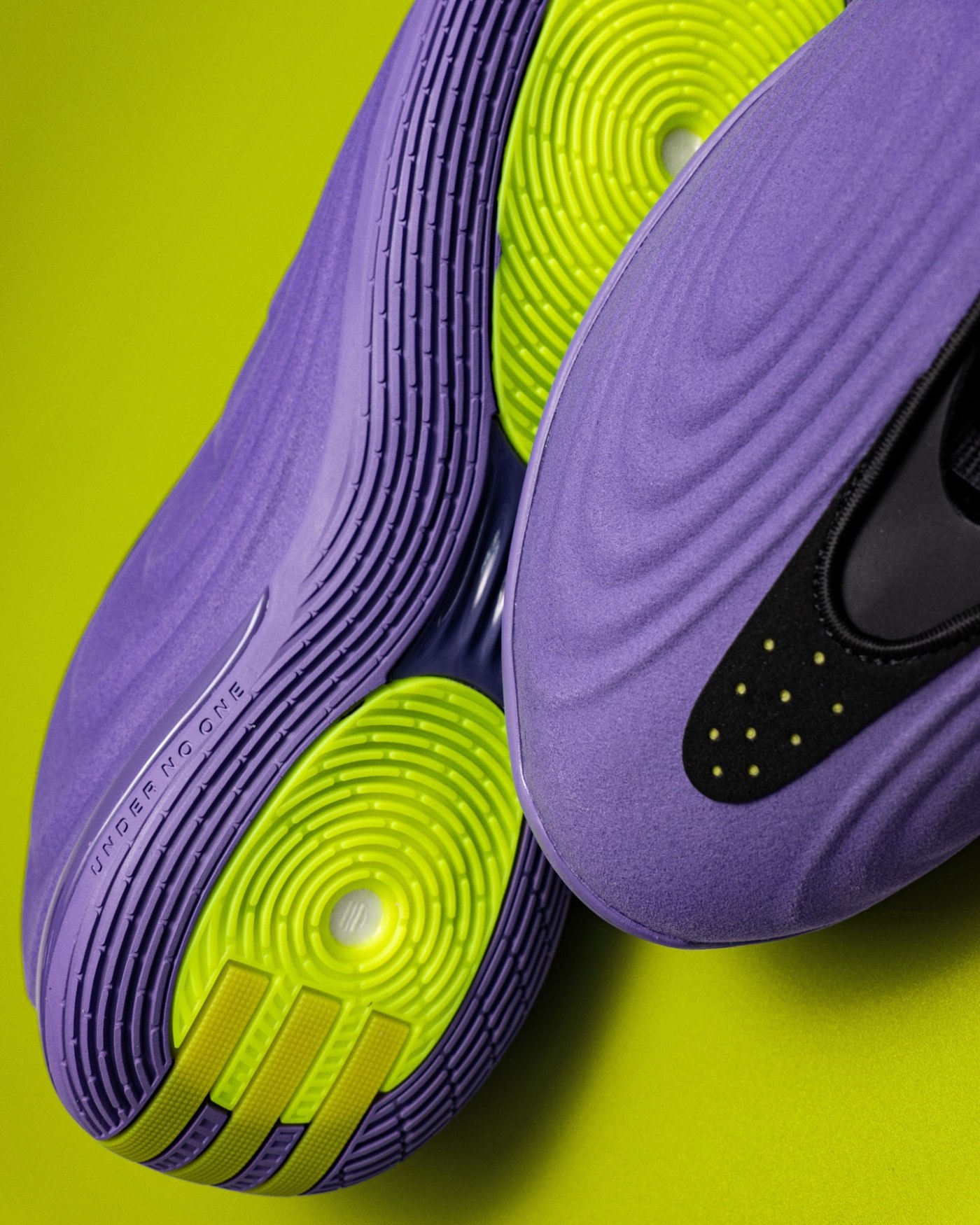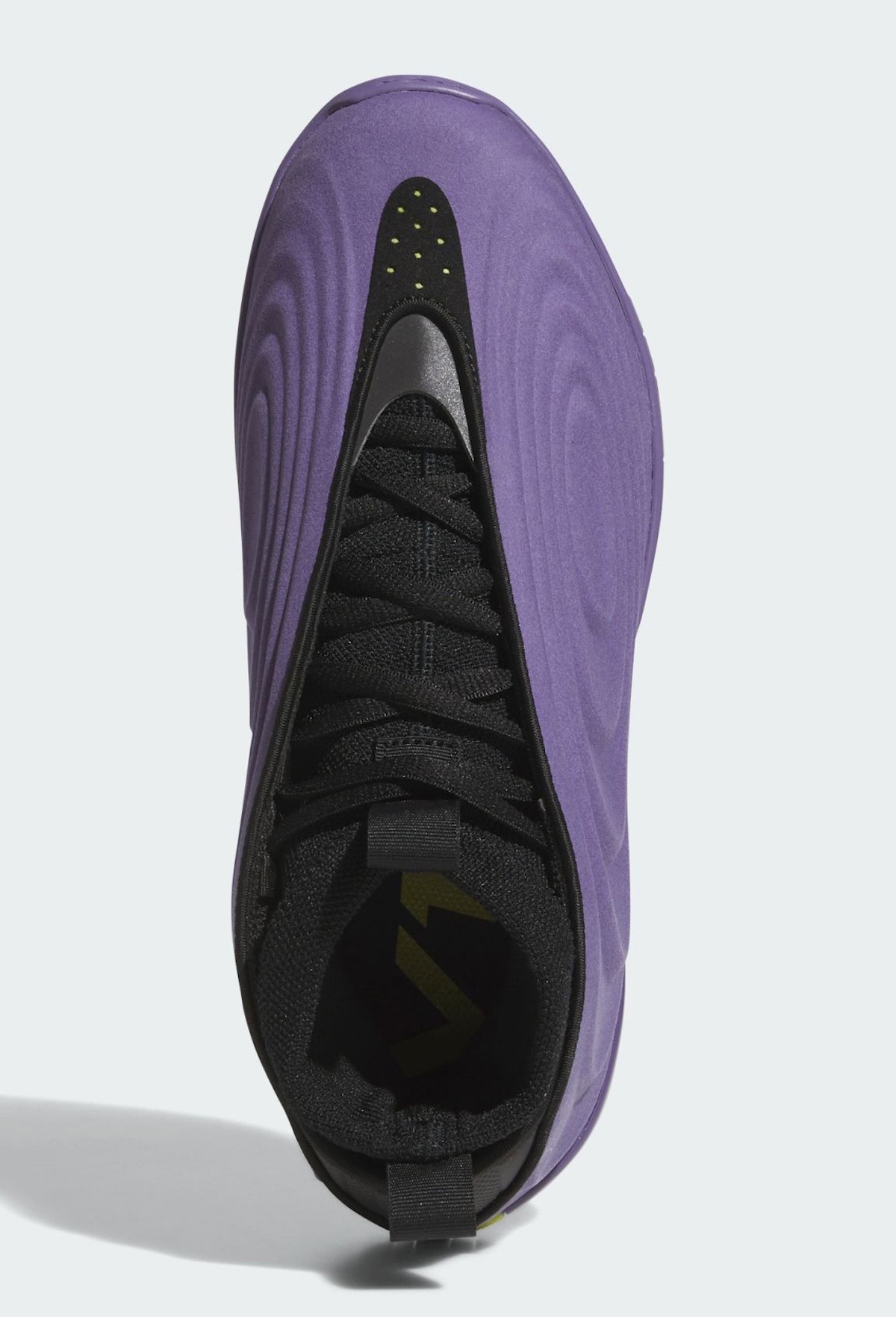 鞋身中部加入了纯黑色的内靴设计,在提供紧致包裹感的同时,也起到了中和大面积紫色的作用,让整体造型稳固且不显得臃肿。