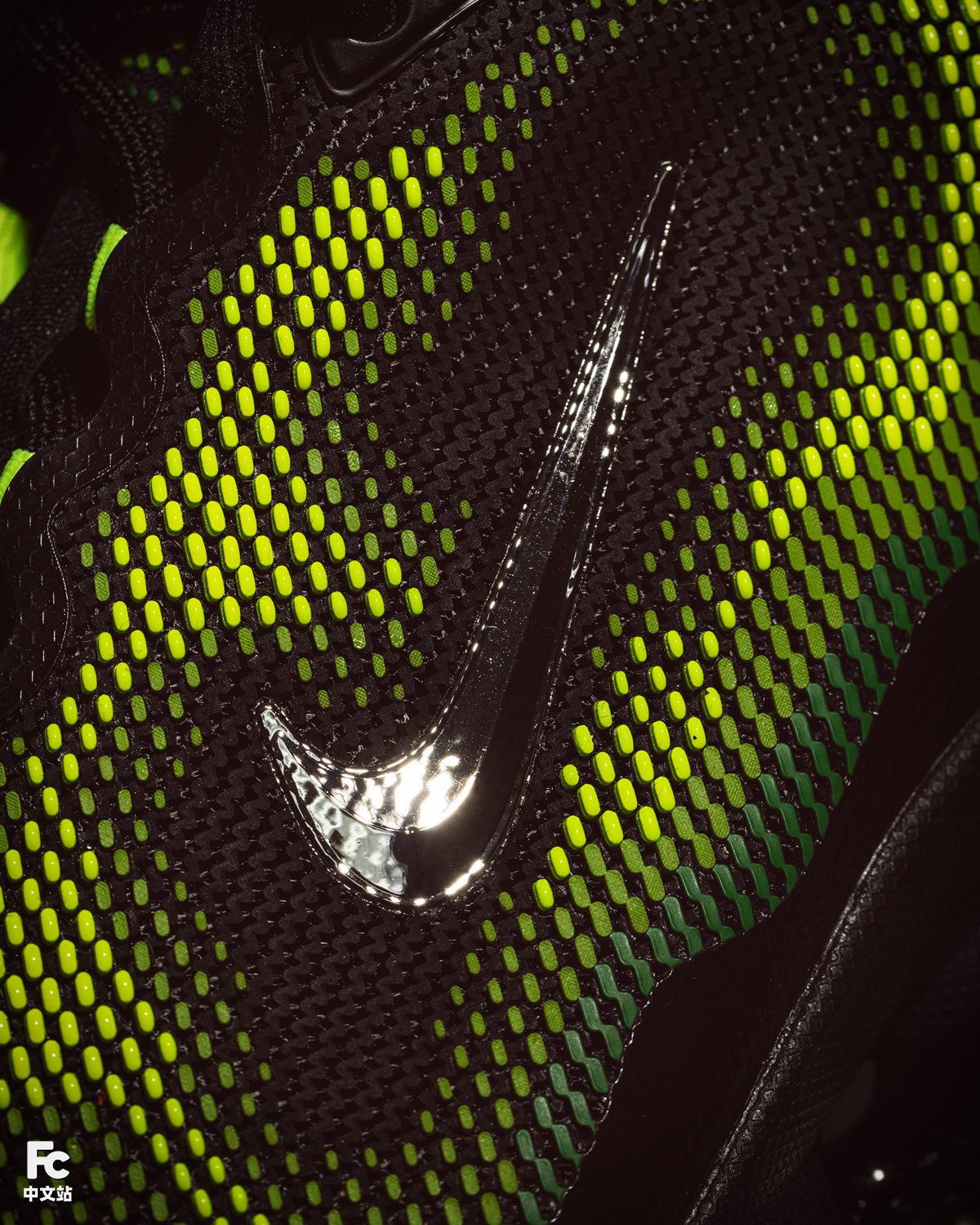 细节方面同样考究,包括 Swoosh 在内的多处均点缀了类似镜面的特殊材质,呈现出耀眼的液态金属光泽,将整双鞋的未来科幻属性直接点明。
