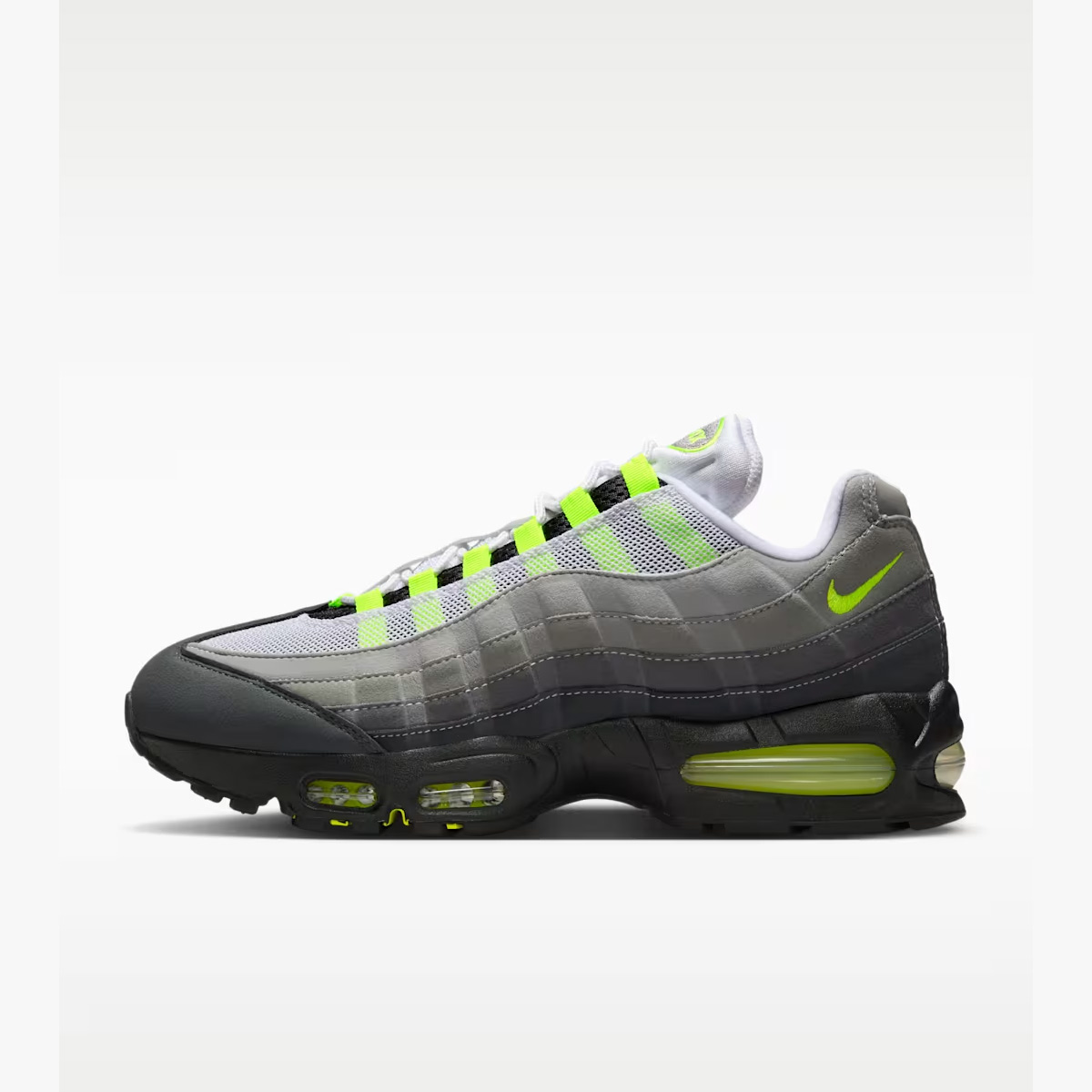这双全新回归的 Nike Air Max 95 “Big Bubble/Neon” 带着「Big Bubble 大泡泡」的响亮名号,在细节刻画上进一步还原了 1995 年诞生之初的真实模样。