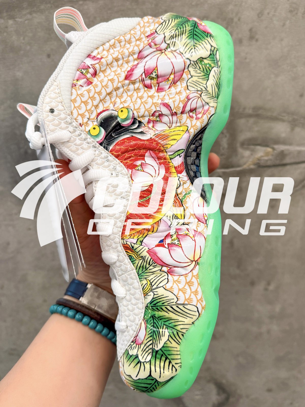 鞋面和鞋领进行了以白色为主色调的清爽改造,将原本的黑色鱼鳞,改成了白色鱼鳞。
