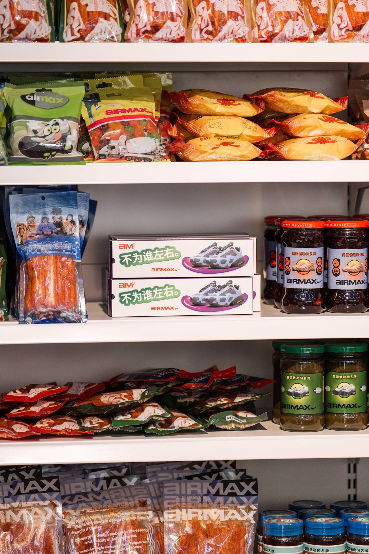 店里不仅摆放了六十多种结合本土元素的 Air Max 主题零食,还还原了当年流行的街头小游戏,让到场玩家能直接上手体验互动。