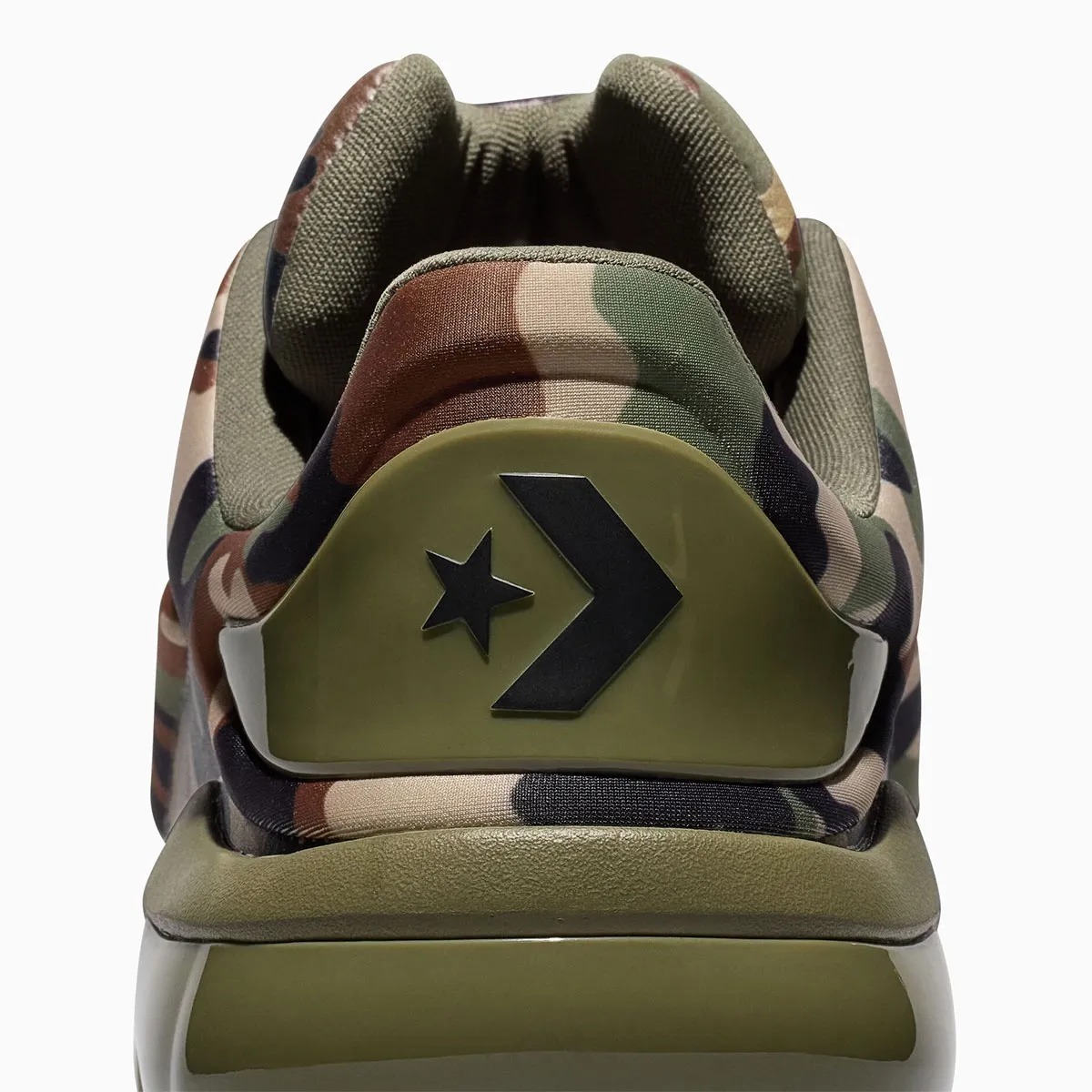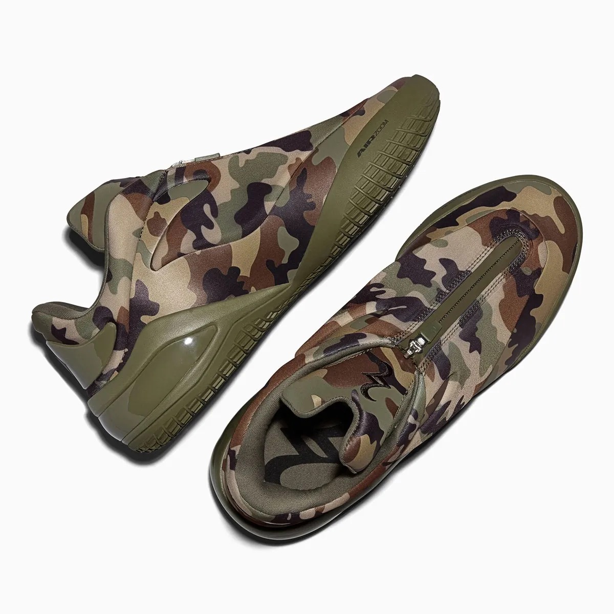 整双鞋覆盖军事风格的迷彩图案,绿色与棕色交织,视觉辨识度很高。
