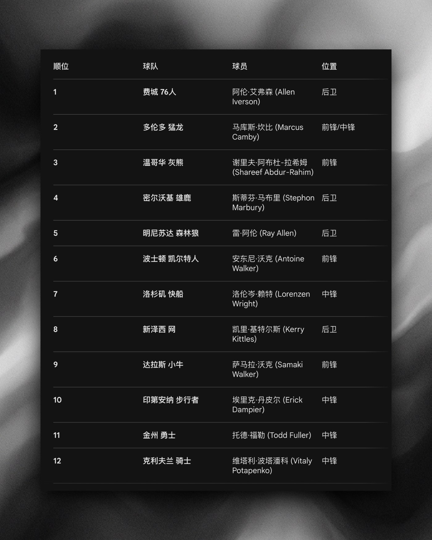 1996 年选秀被称为 “黄金一代”,当年的新秀还有艾弗森(费城 76 人)、马布里(密尔沃基雄鹿)、雷·阿伦(明尼苏达森林狼)等后来在联盟大放异彩的巨星。