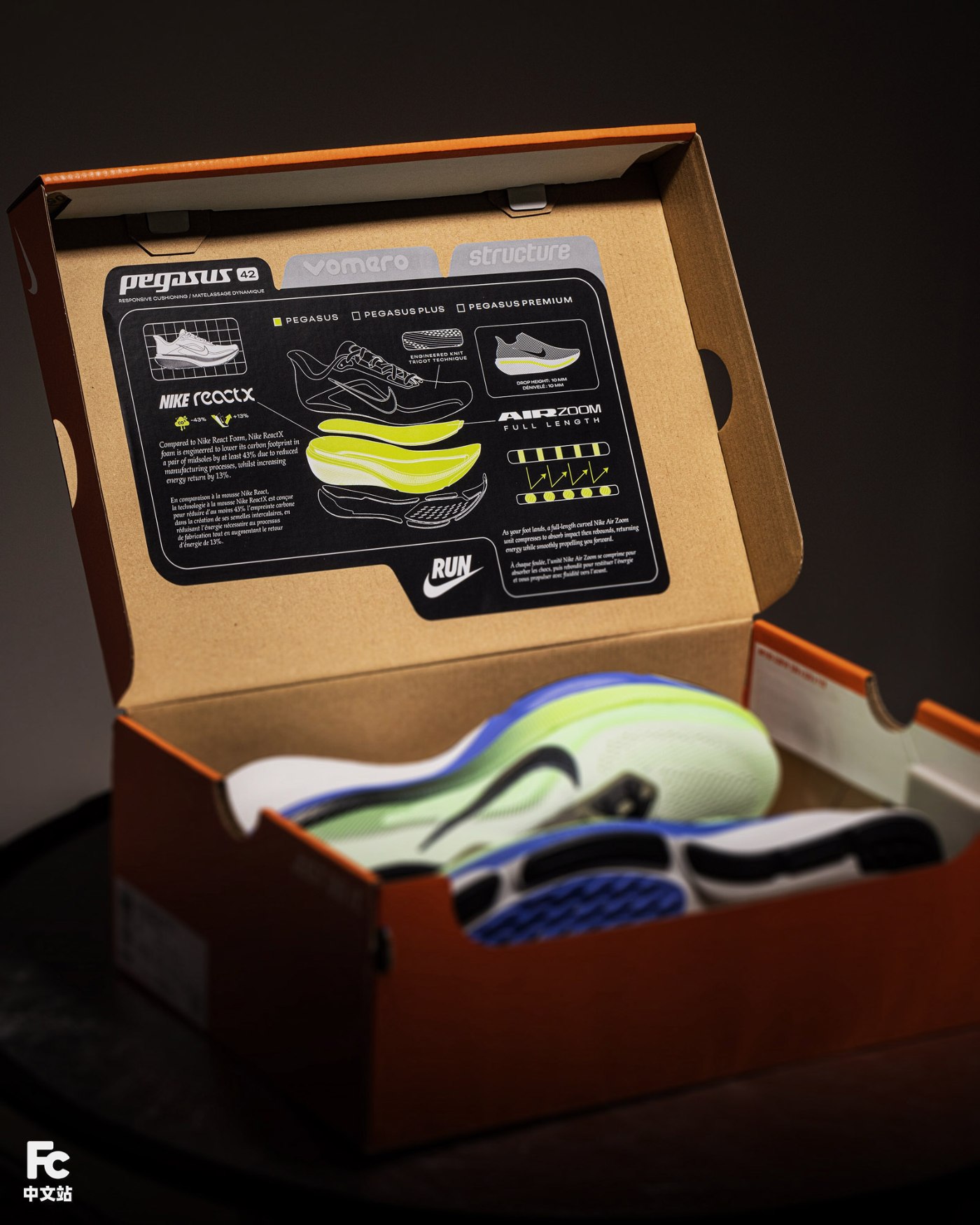 Nike Pegasus 42 延续了这份四十多年来的传承,以 ReactX 泡棉中底,结合弧形全掌 Air Zoom 缓震气垫,能量回馈较前代提升 15%。
