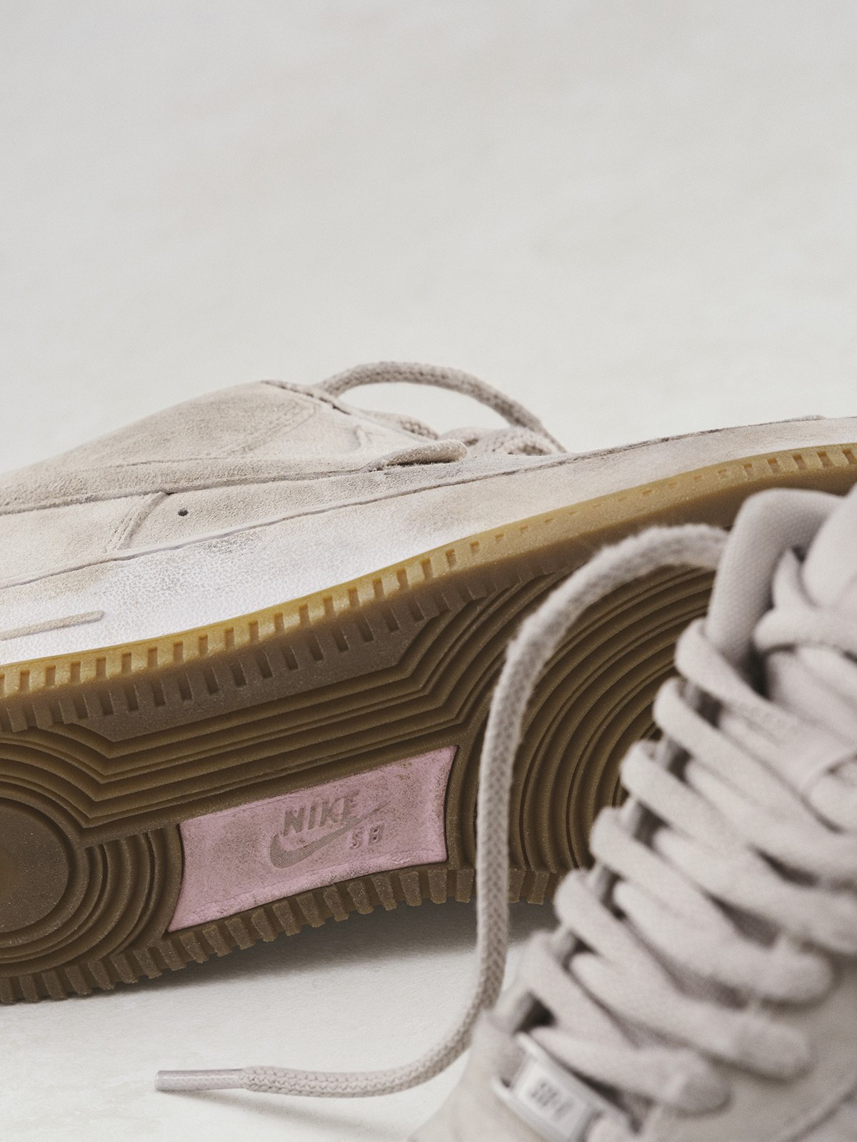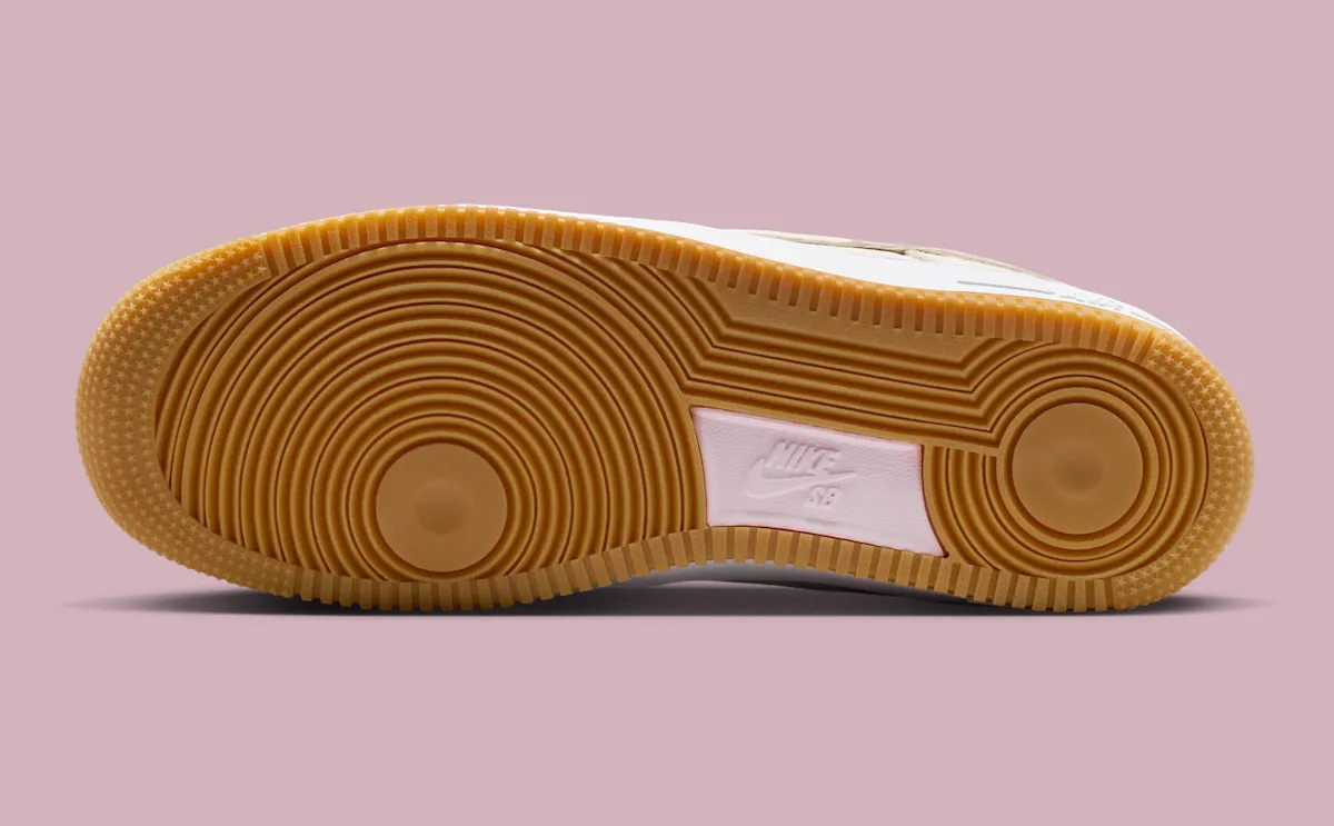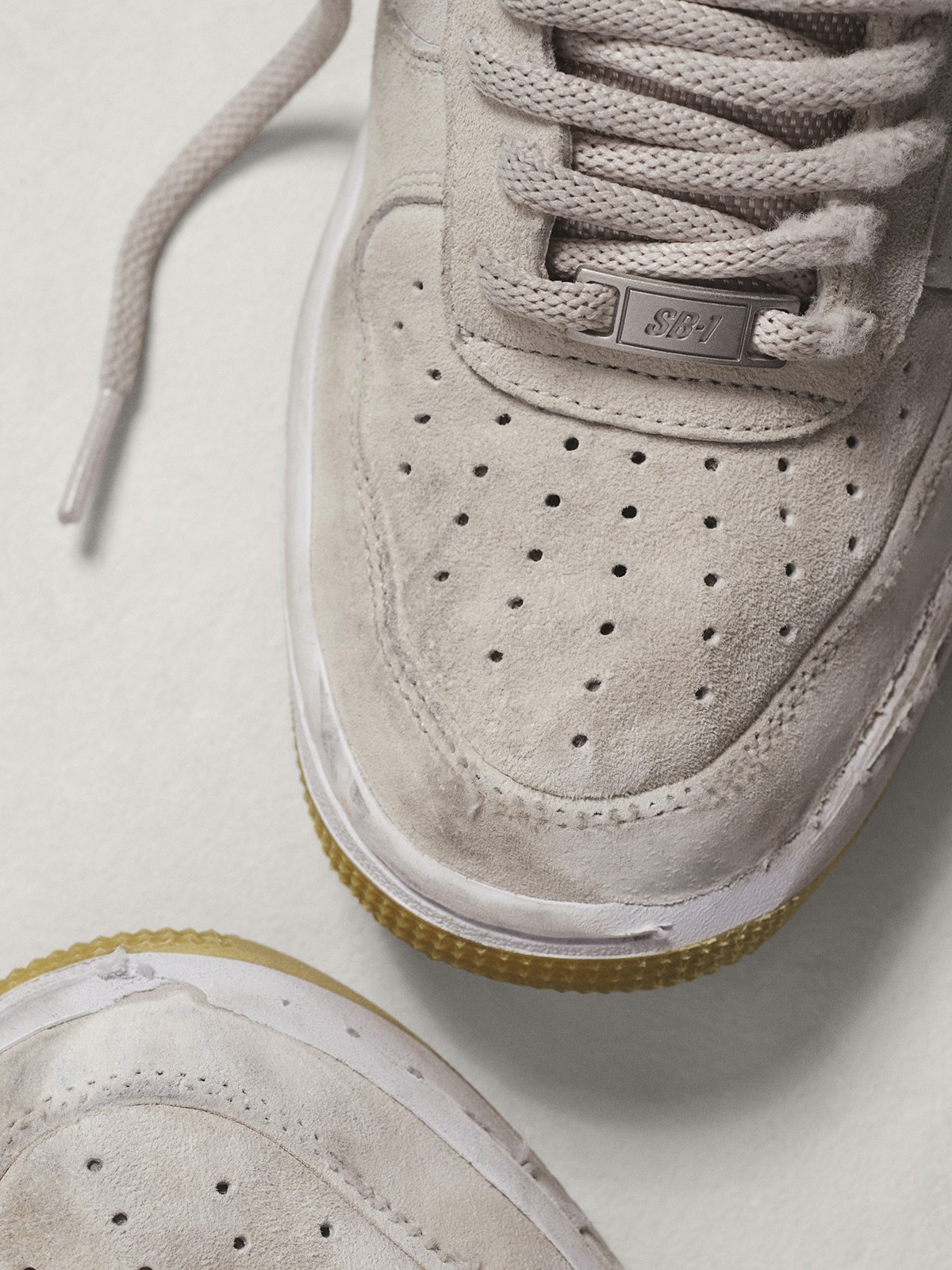 这款首发配色的 Nike SB Air Force 1 采用了浅棕色的麂皮鞋面,带来不错的质感体验。