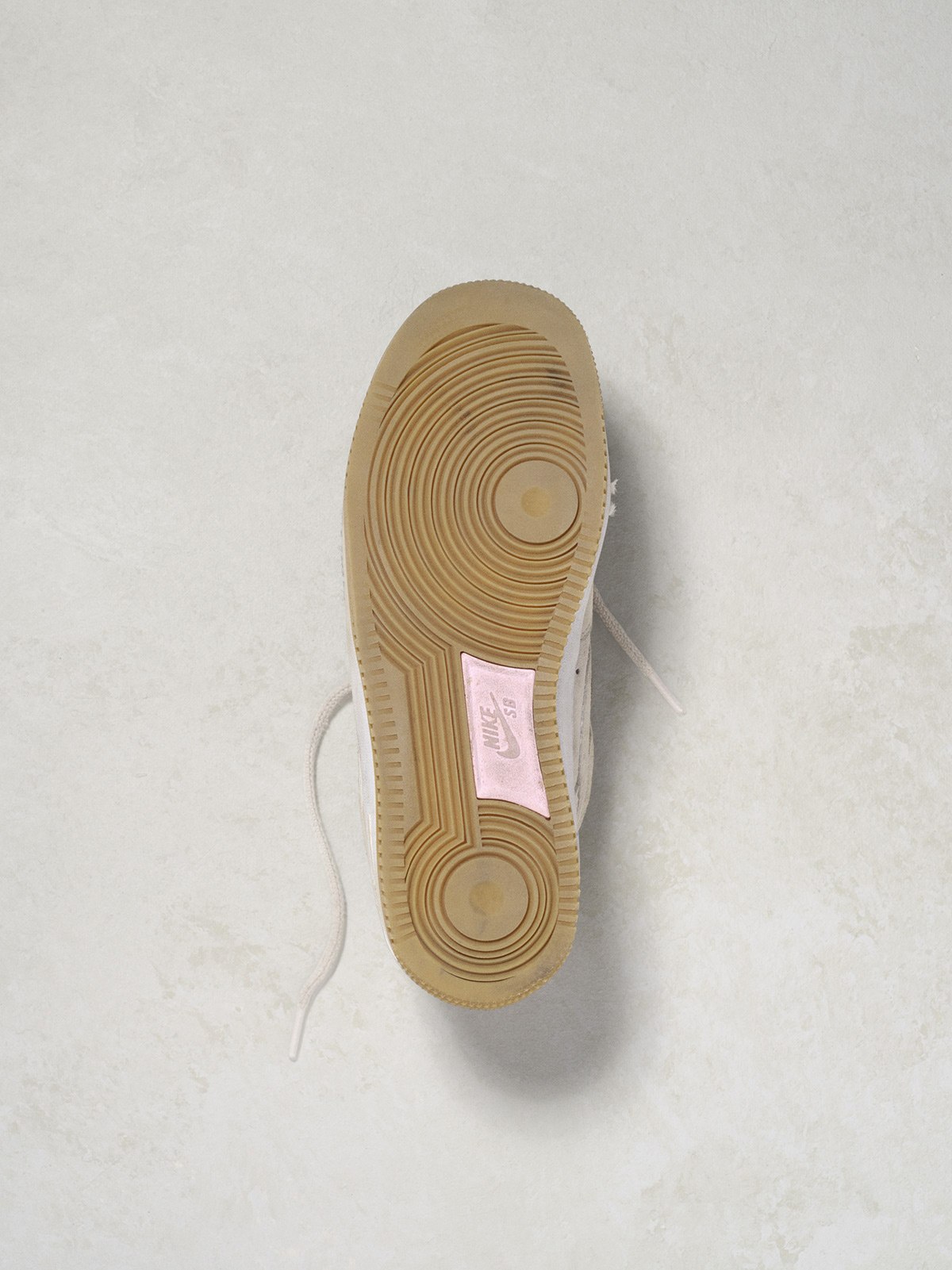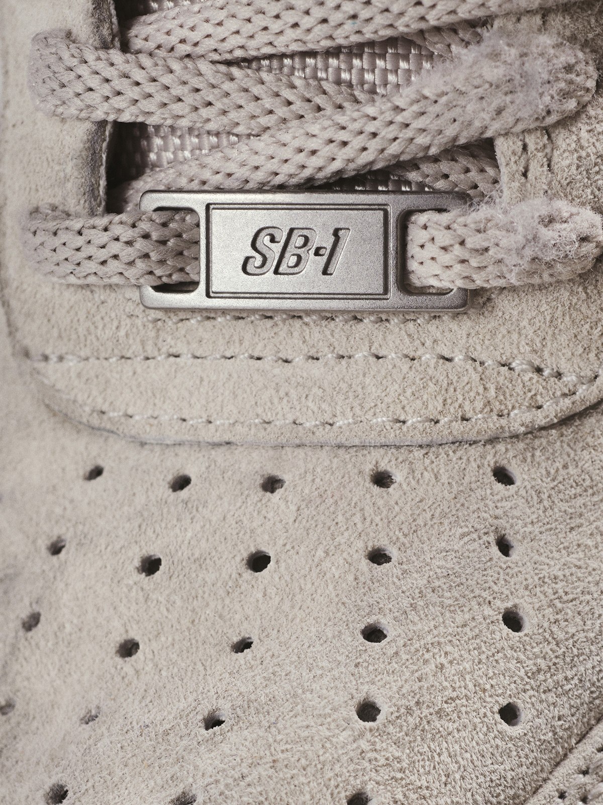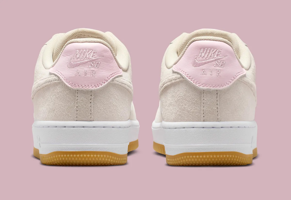 这款首发配色的 Nike SB Air Force 1 采用了浅棕色的麂皮鞋面,带来不错的质感体验。