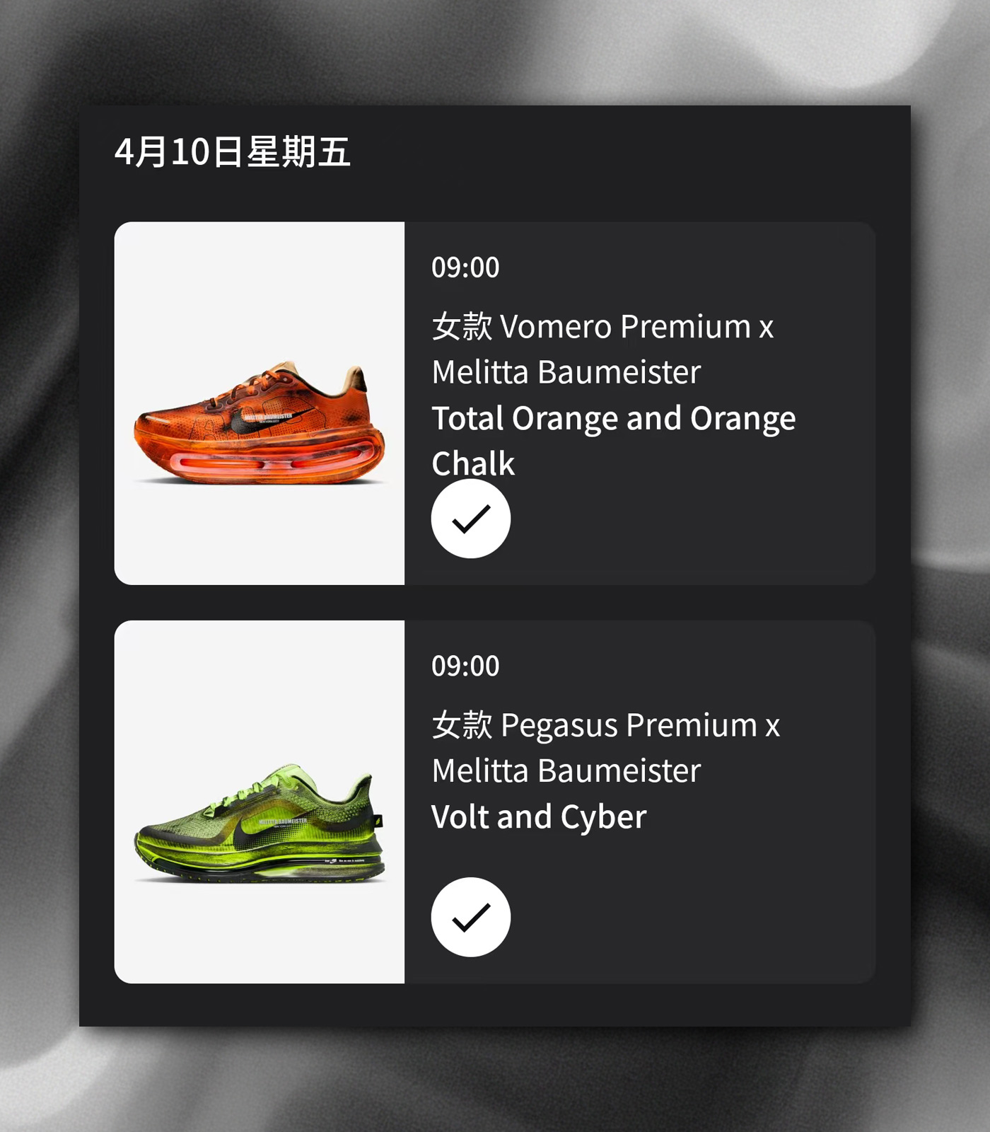 与 Melitta 联名合作的 Vomero Premium 和 Pegasus Premium,不仅富有艺术感,还通过重度的手工涂绘工艺,让每一双鞋都与众不同。