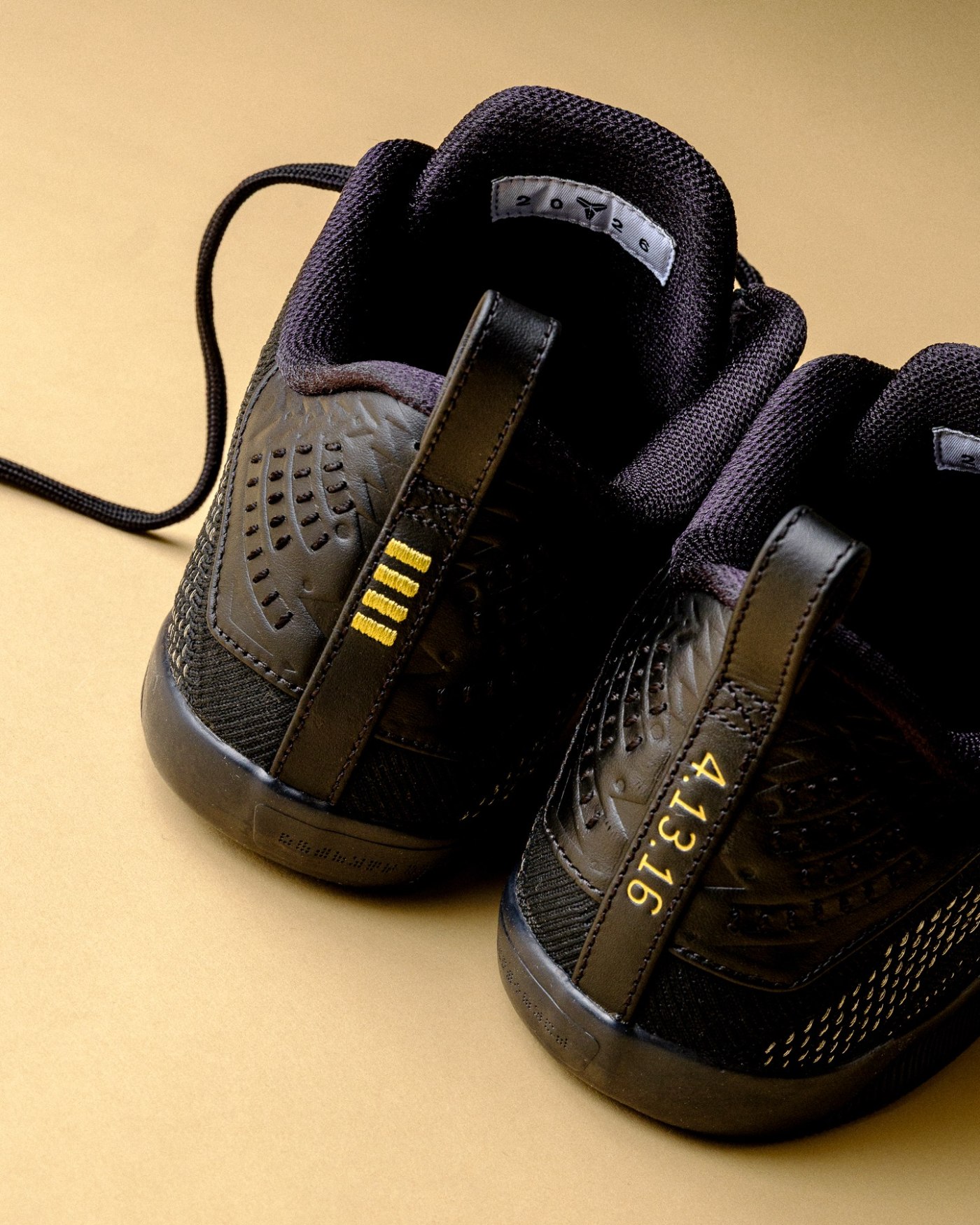 这双鞋更加具有纪念气氛,用金色的字体呈现了科比职业生涯的相关数据和数字。